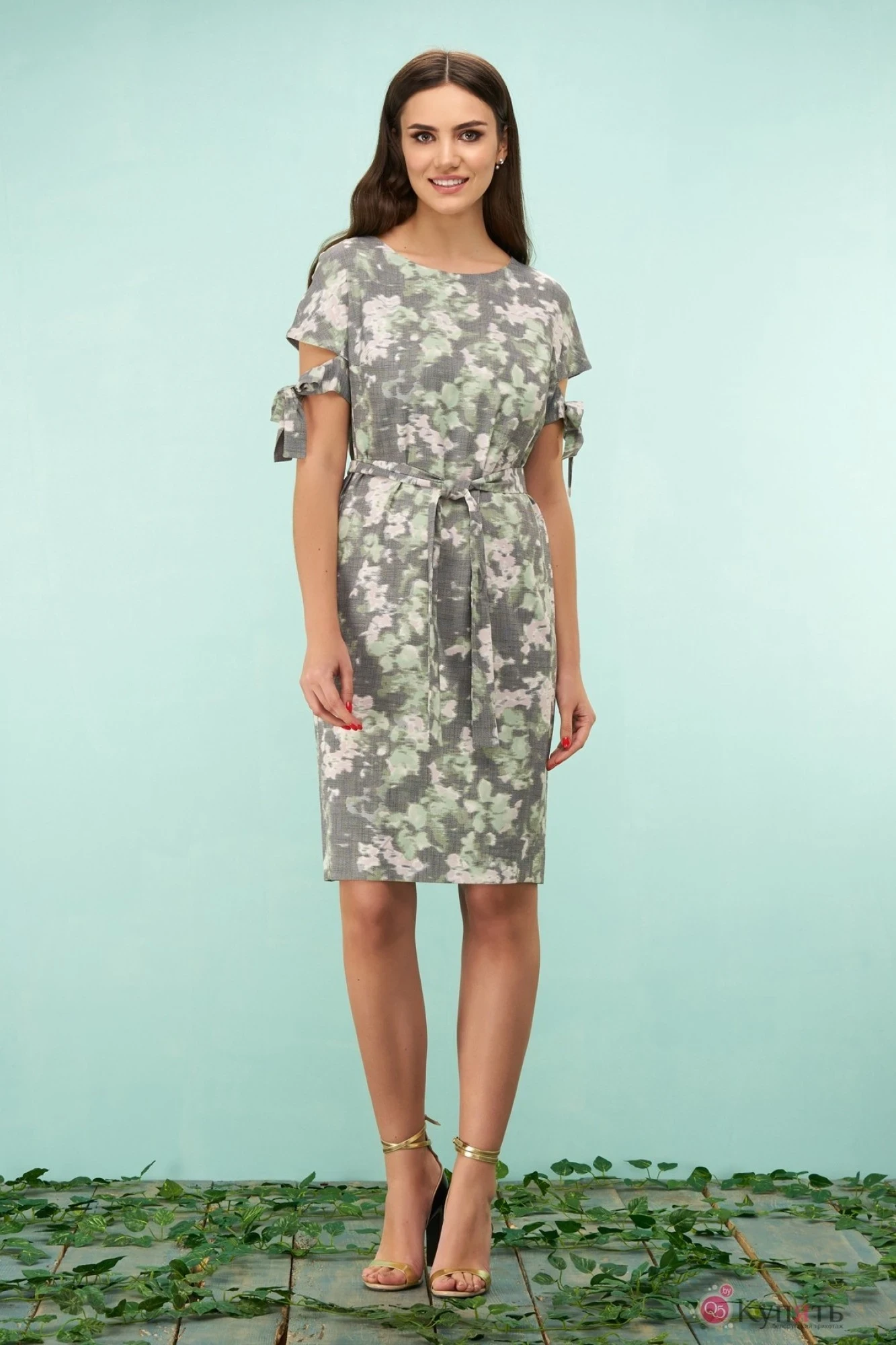 Элегантное платье полуприталеного силуэта с нежным принтом. Без подкладки. Застежка-молния по спинке. Пояс выполнен из основной ткани.