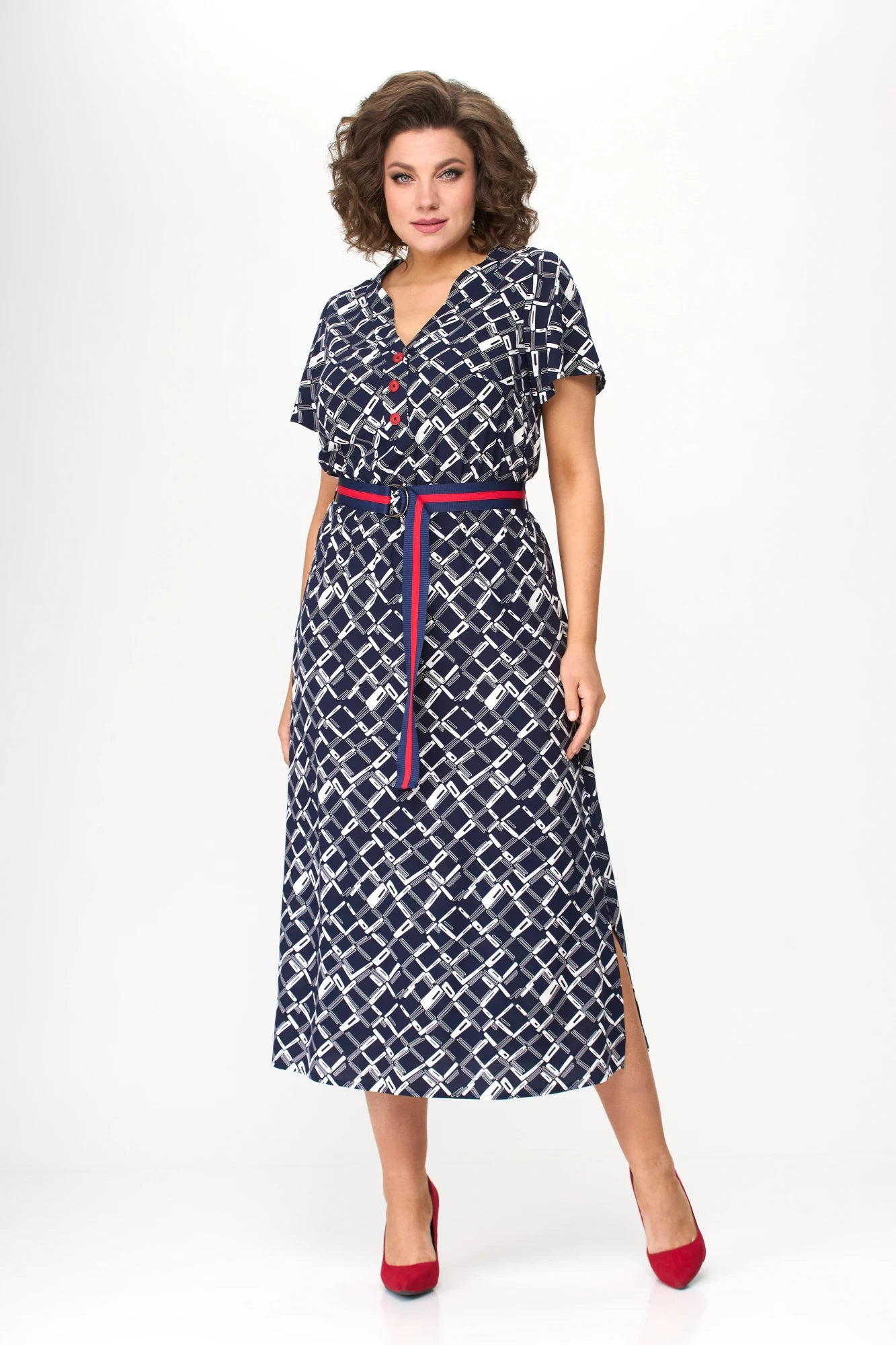 54,56Платье полуприлегающего силуэта, отрезное по линии талии.