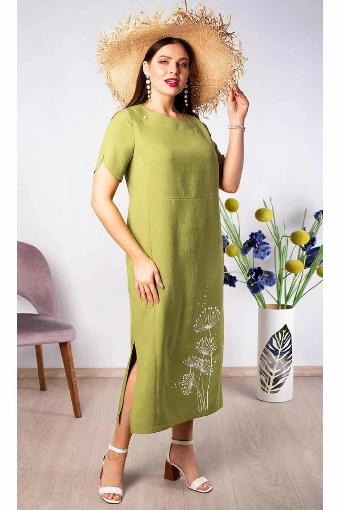 Средняя длина платья 123 см. Длина рукава 25 см. Рост модели 170 см.