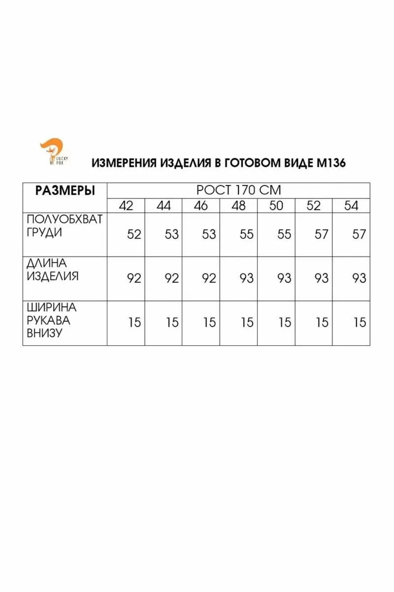42р (ПОЛУОБХВАТ ГРУДИ 52, ДЛИНА ИЗДЕЛИЯ 92, ШИРИНА РУКАВА ВНИЗУ 15);
