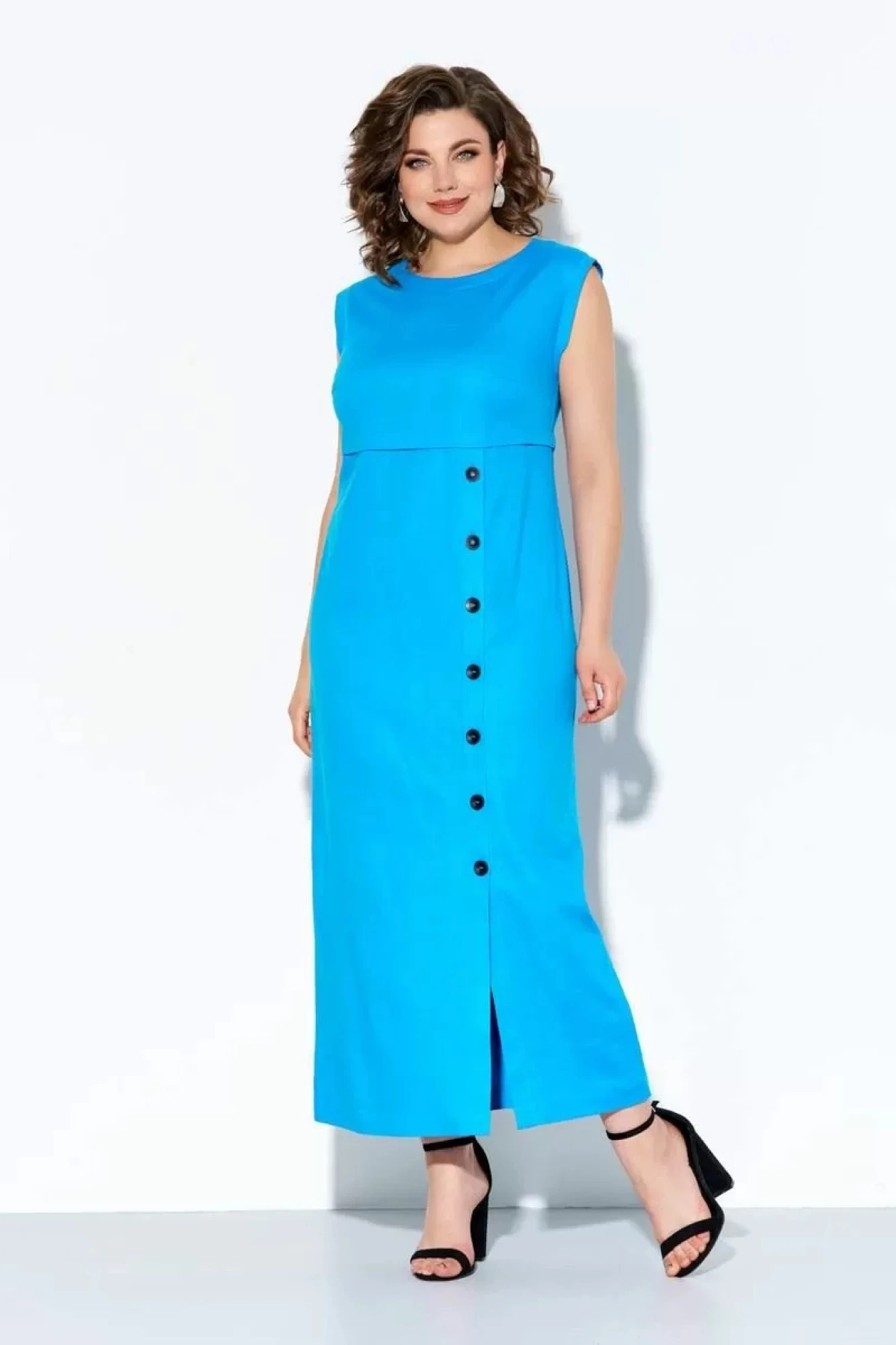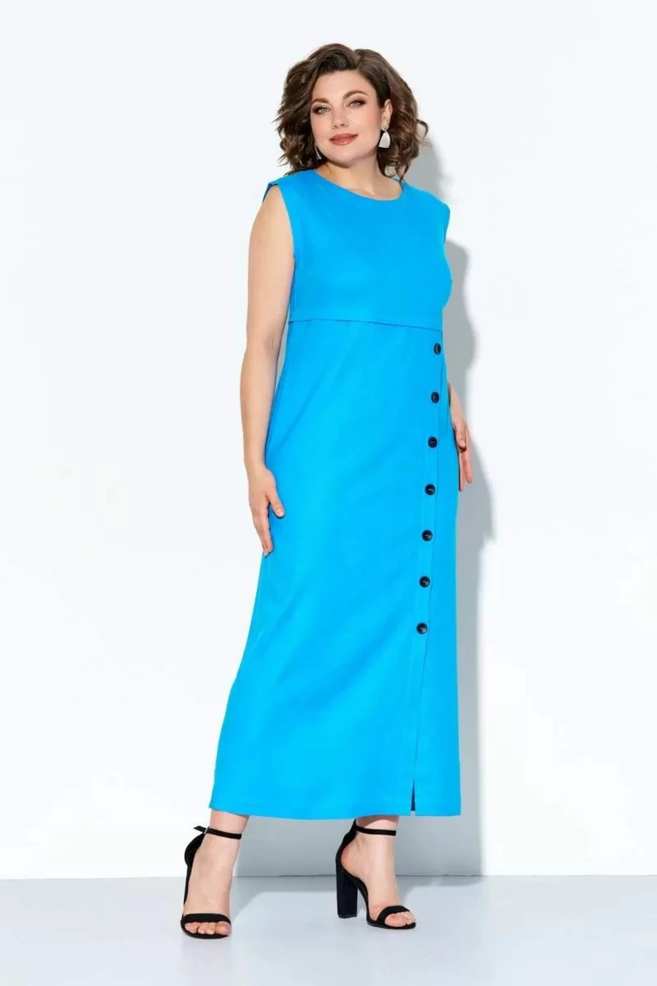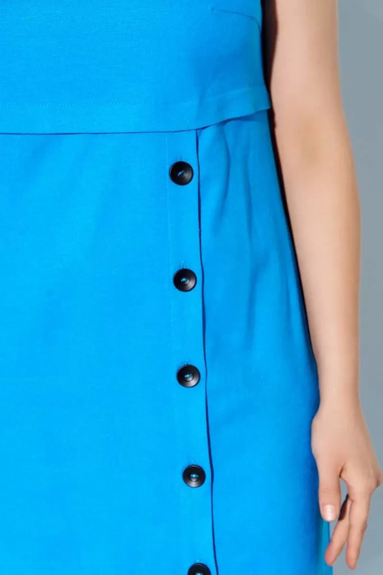 Летнее платье прямого силуэта с подрезом под грудью и декоративной планкой на петли и пуговицы, линия плеча которого немного спущено. Платье выполнено из натурального мягкого льна (не колется) с добавлением стрейча.