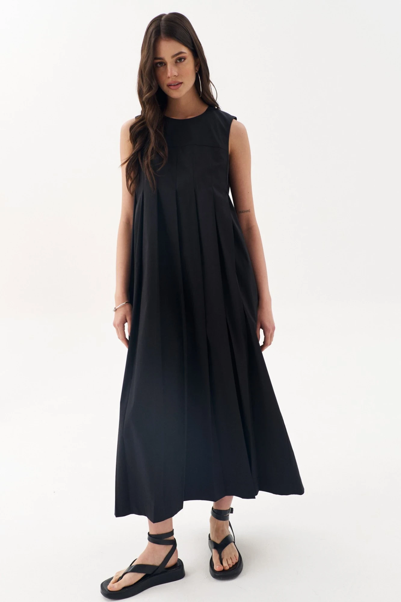 •по переду и спинке притачные кокетки и декоративные складки •по спинке застежка на молнию •в боковых швах карманы •длина макси"