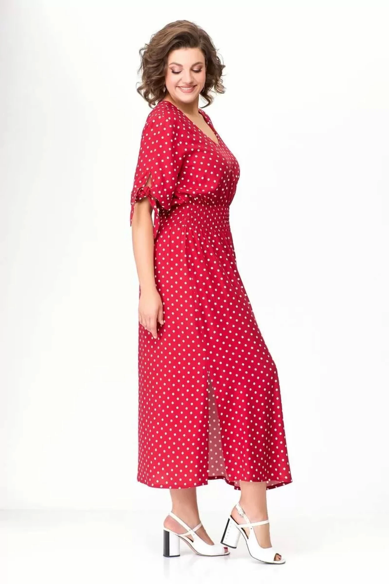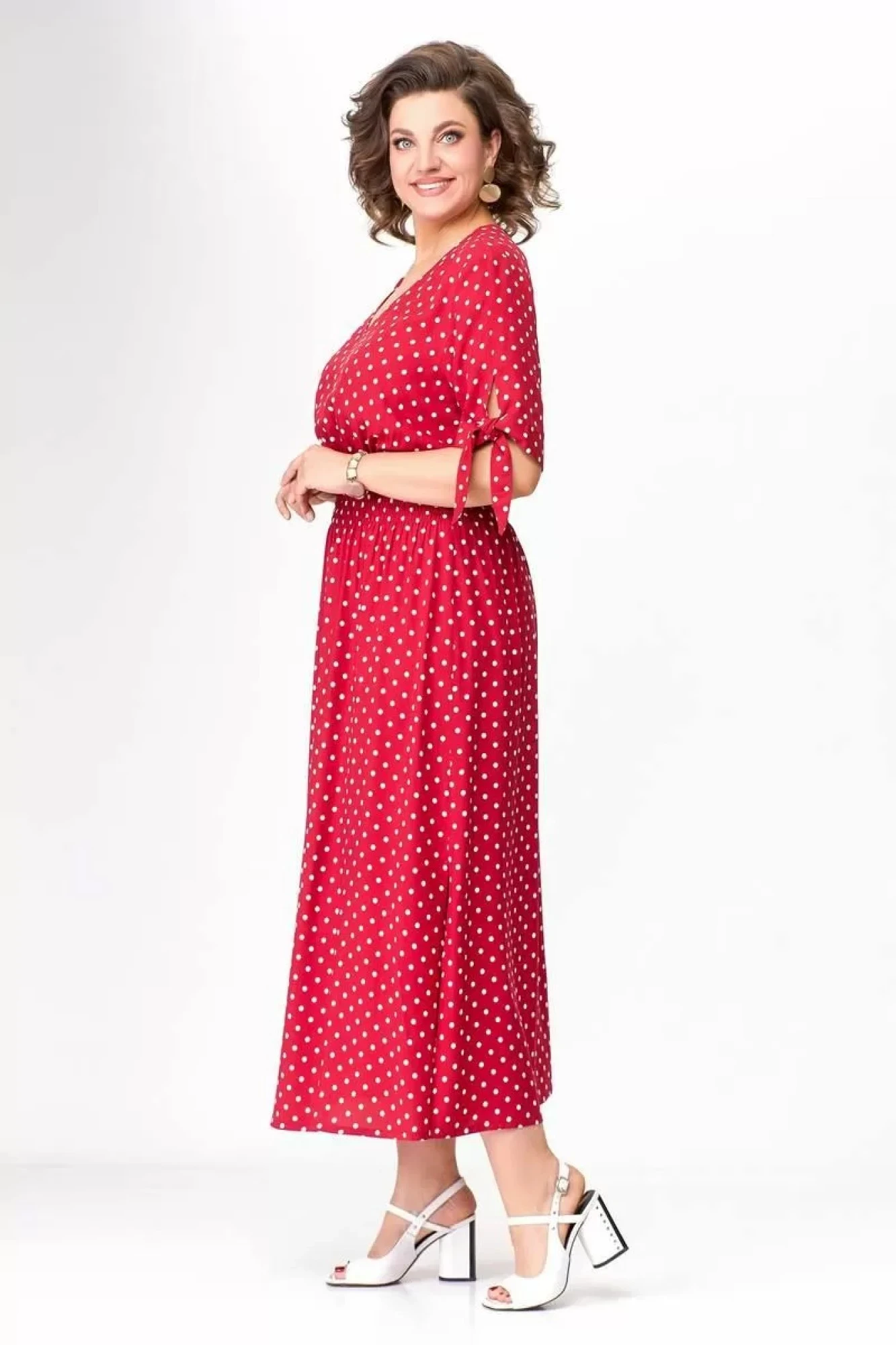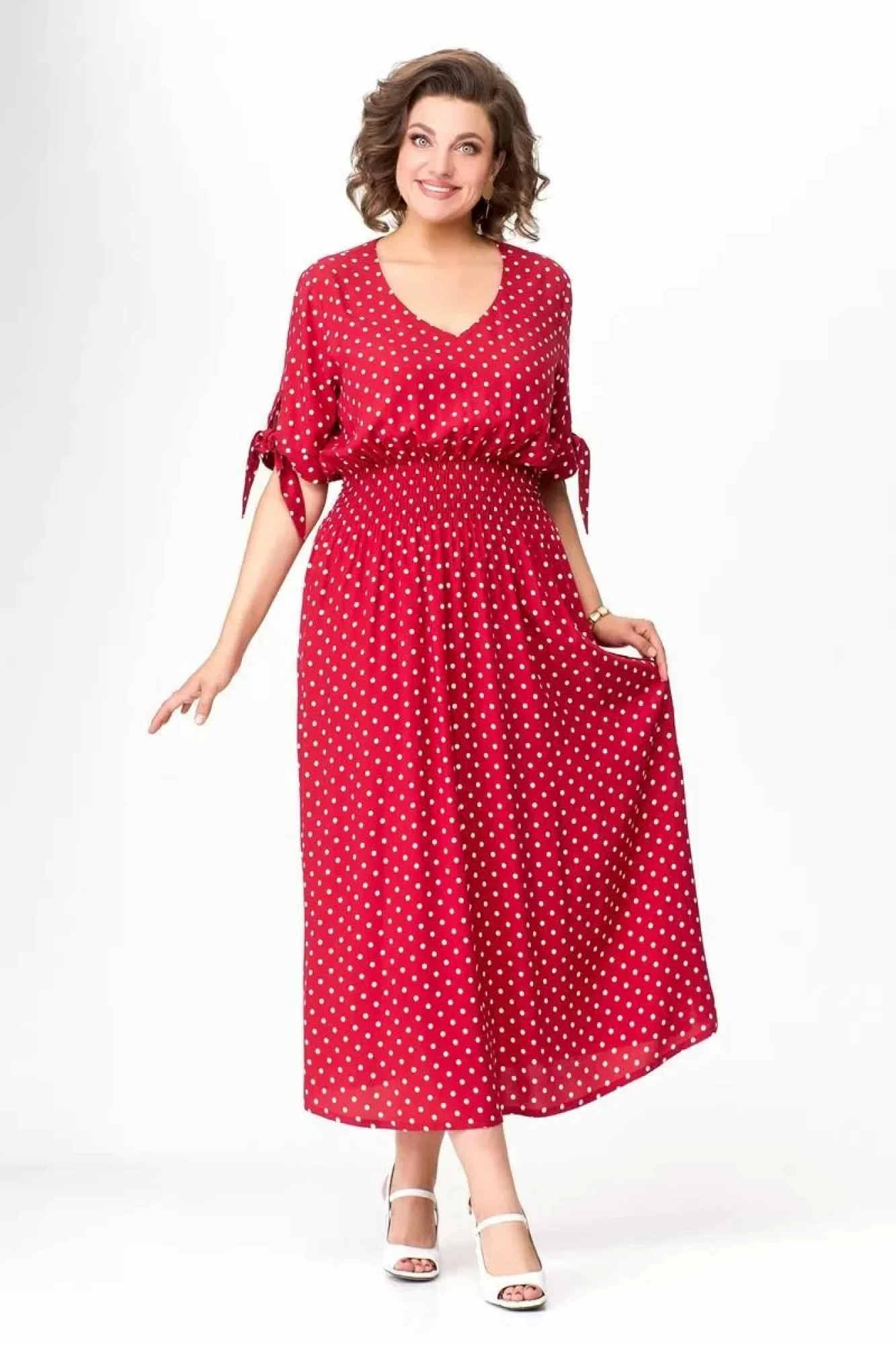 Платье Swallow 568.2 Спелая вишня в принт «белые горохи»