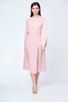 потайная молния по спинке , длинный рукав сосборен на манжетах .