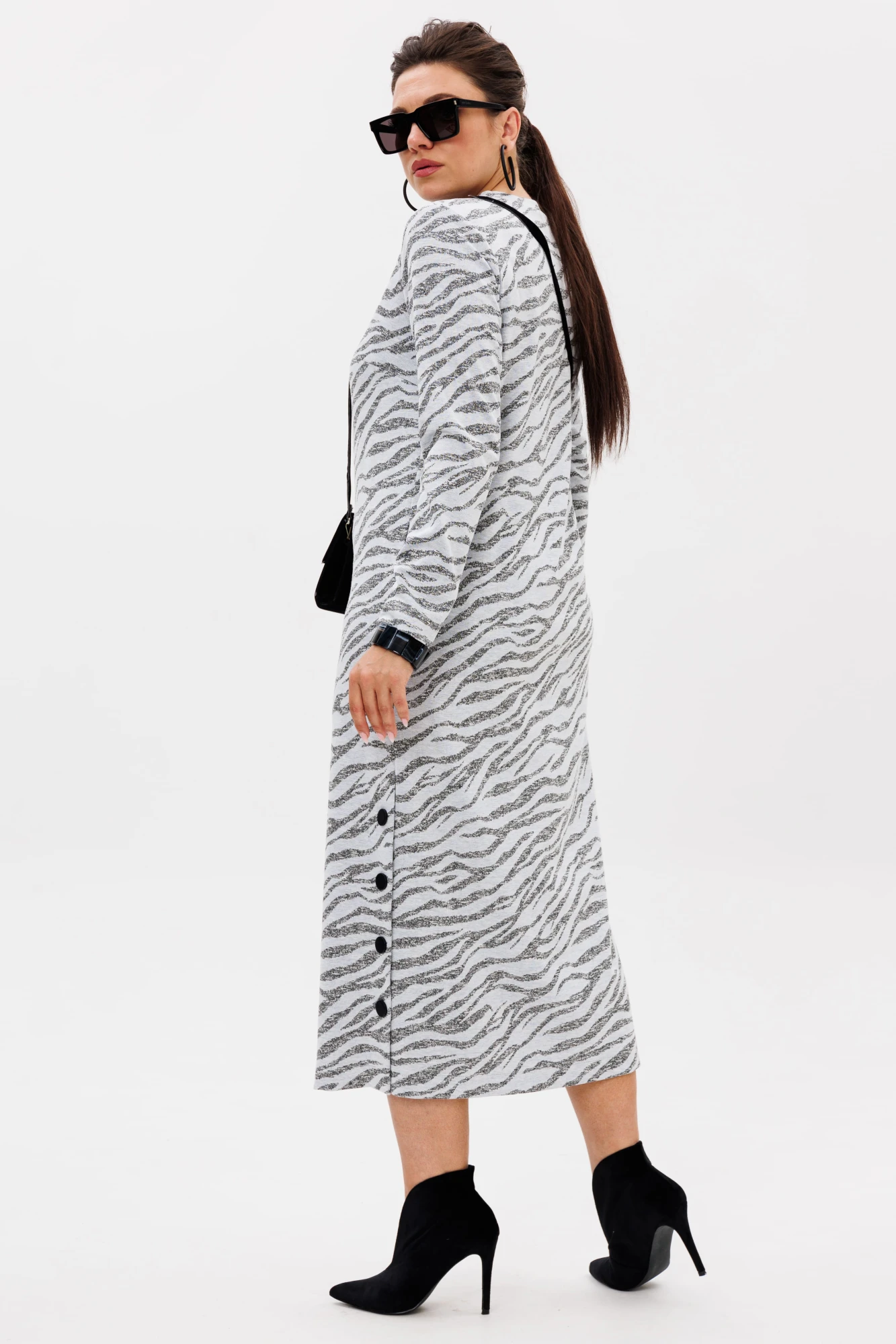 Яркий и необычный принт привлекает внимание и выделяет ваш образ, подчеркивая вашу индивидуальность. В таком платье вы всегда будете выглядеть стильно и чувствовать себя уверенно, сохраняя при этом комфорт и лёгкость движений.