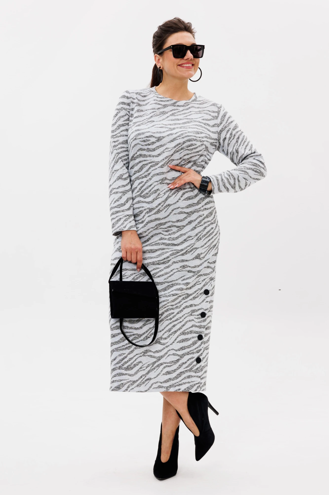 Втачной рукав придаёт образу классический акцент, делая платье универсальным и стильным выбором на каждый день.