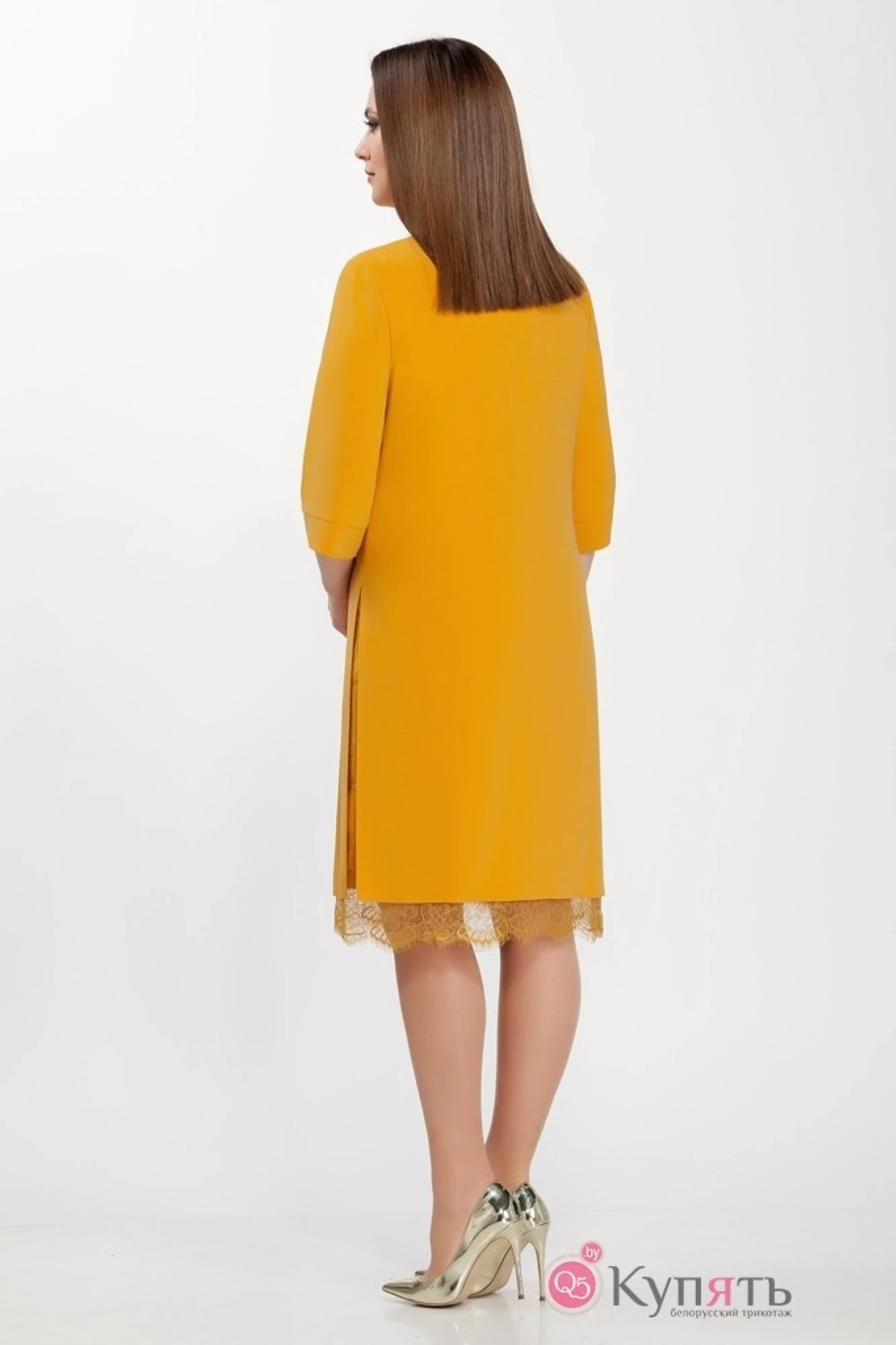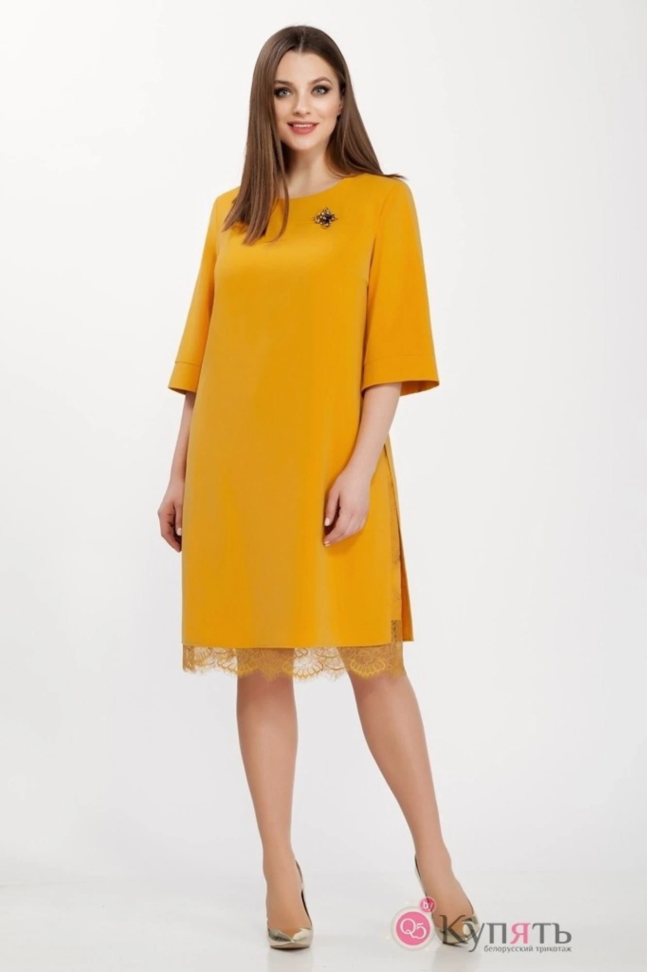 Платье прямого силуэта , отрезная кокетка по переду . По боковым швам разрезы с декоративными вставками с кружевом . Рукав втачной расширенный к низу с отрезной манжетой. Платье на подкладке .
