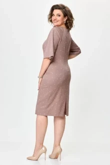 Платье полуприлегающего силуэта. Горловина круглая, собрана на резинку с декоративными бусинам.