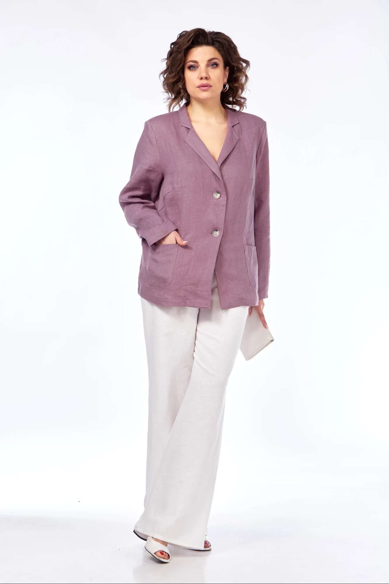 48,50,52Длина по спинке 67 см, длина рукава 62 см. Длина брюк 110 см.