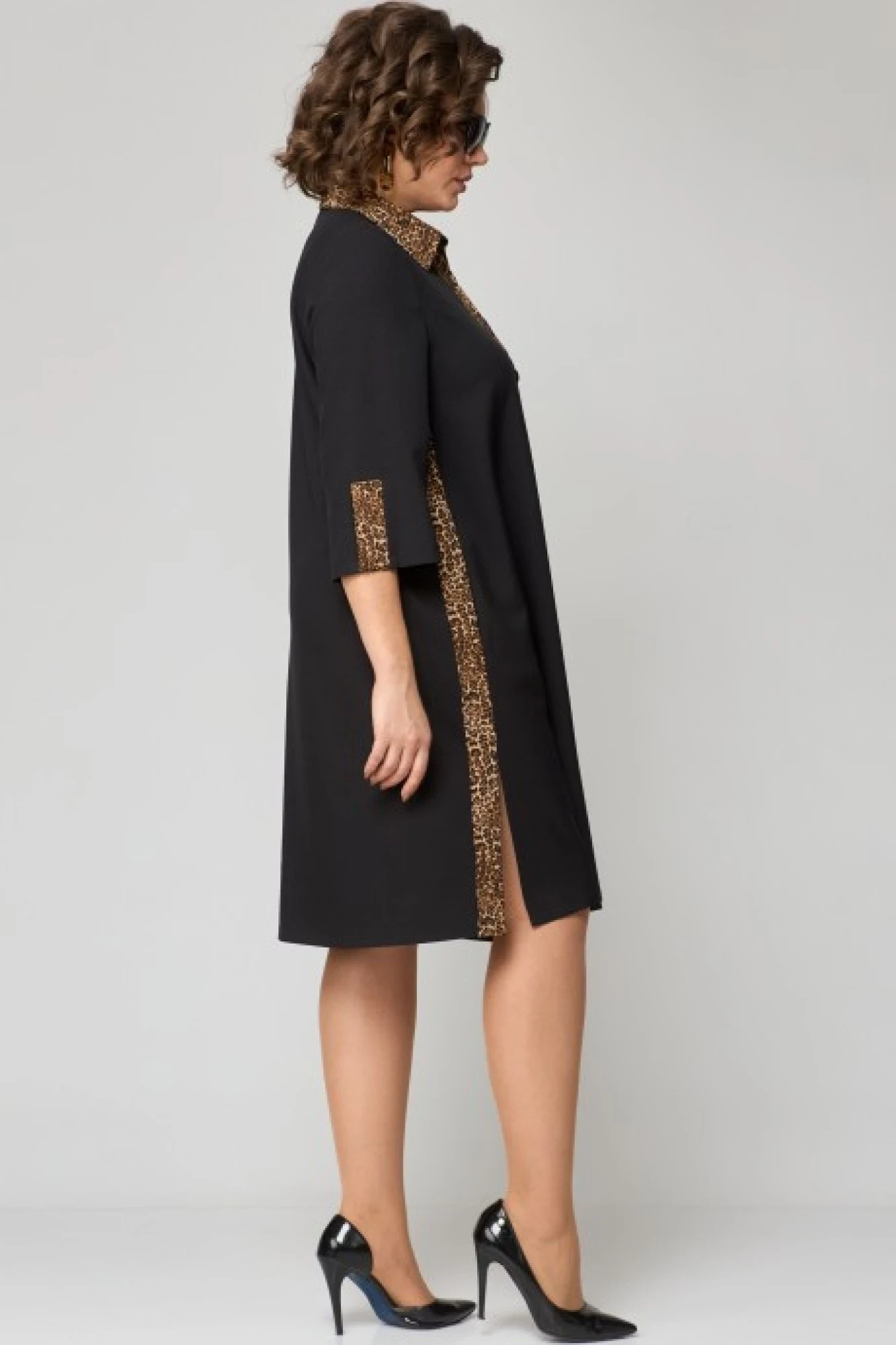 Льняное платье EVA GRANT 7322 черный + леопард