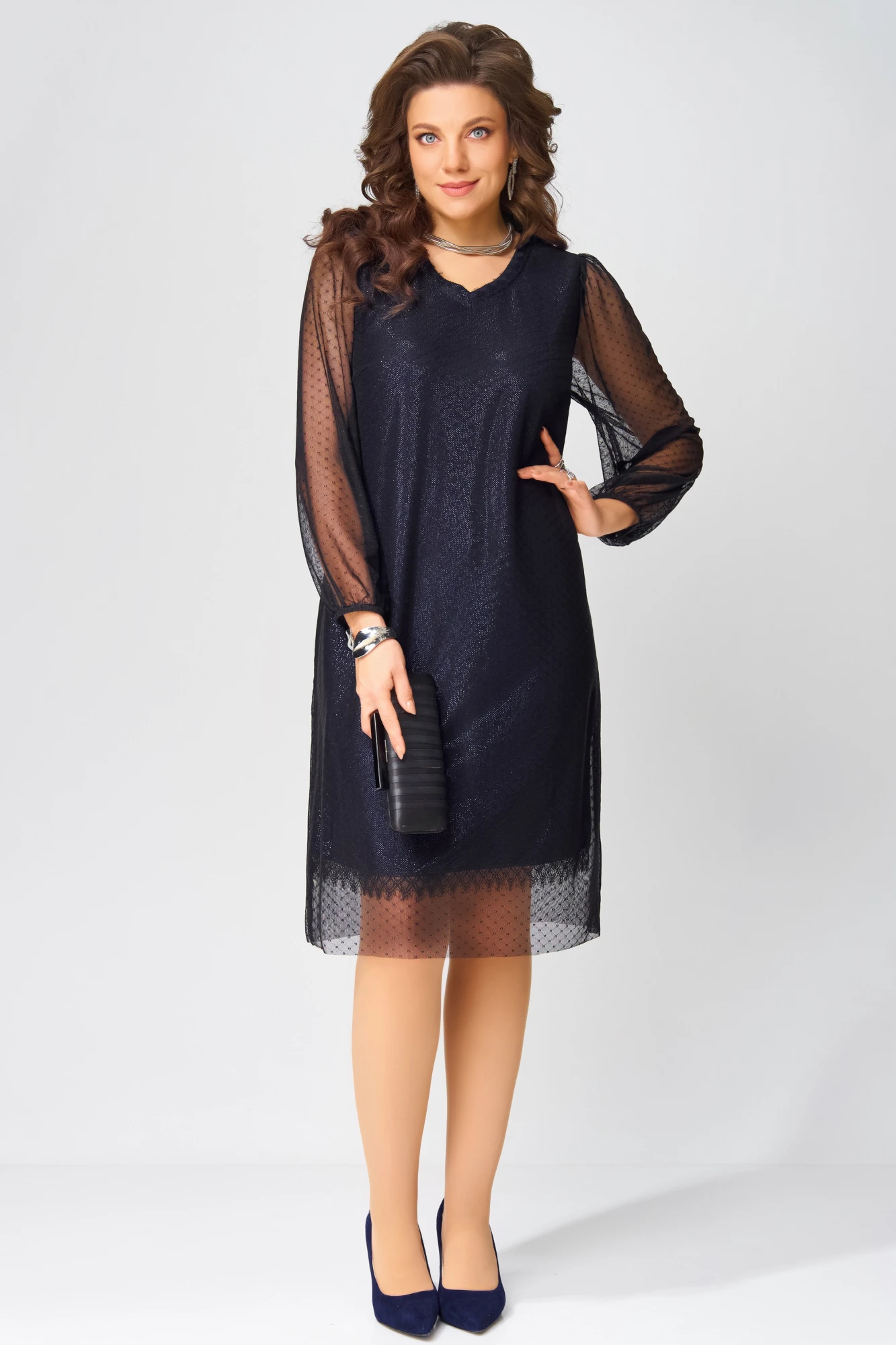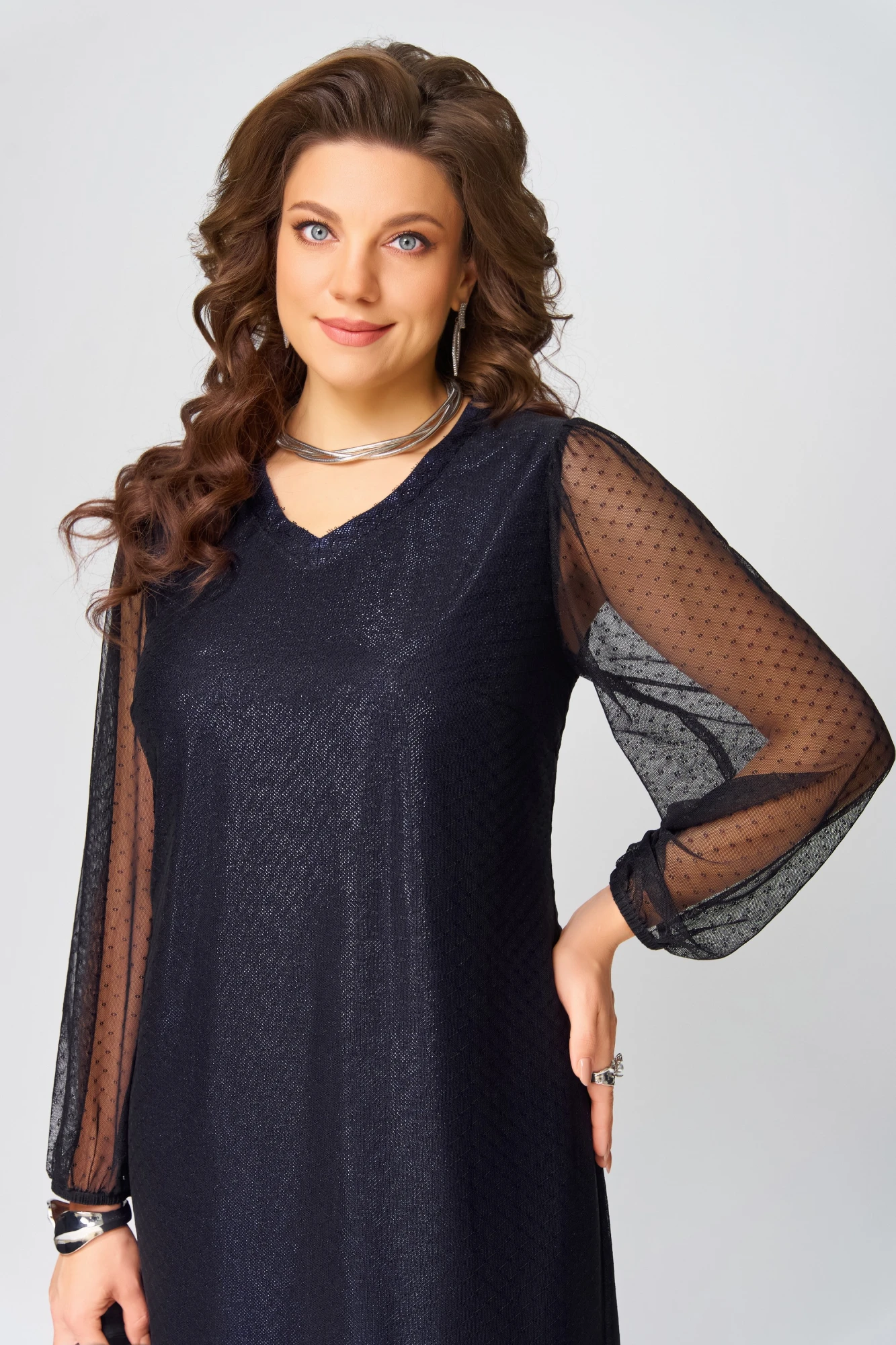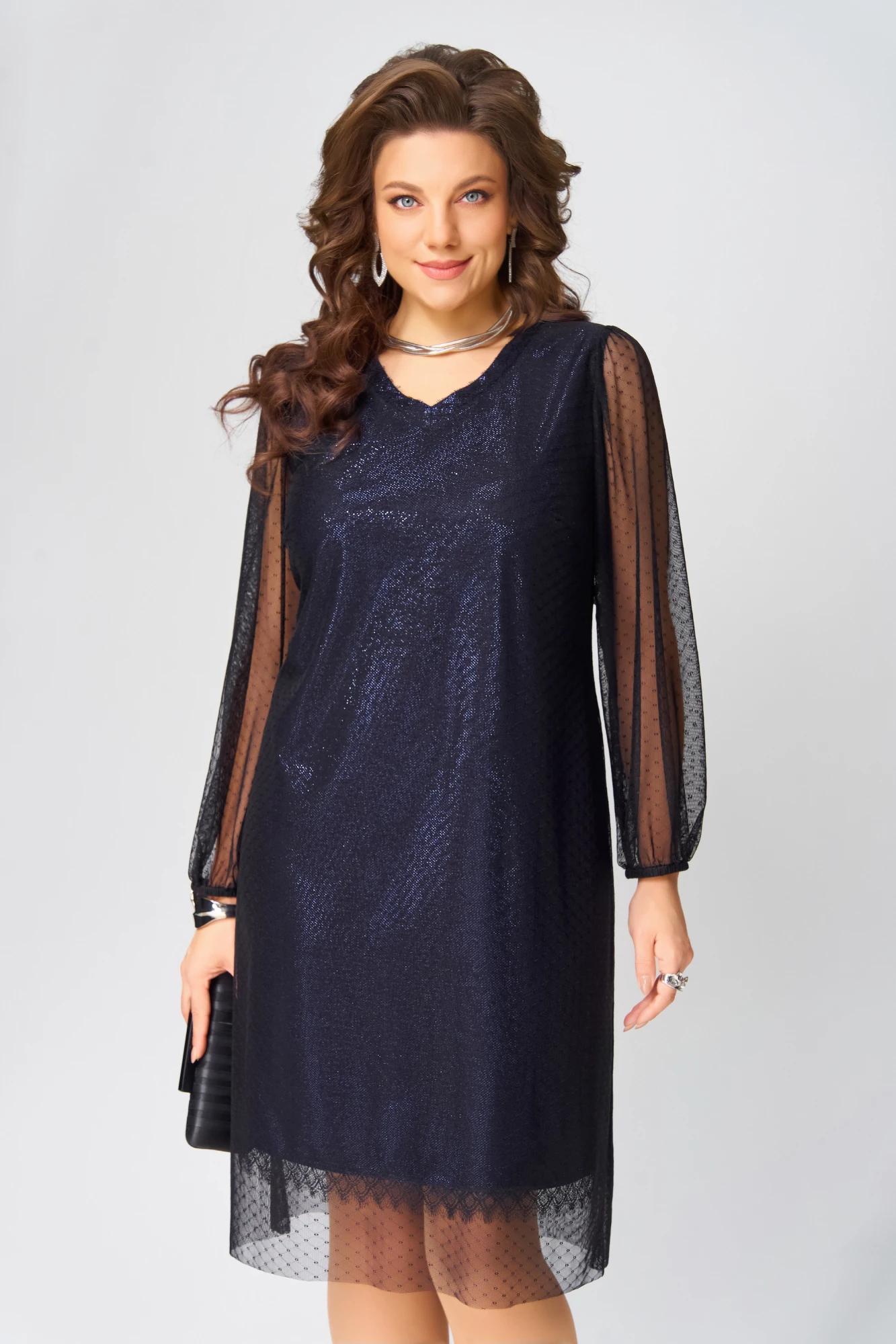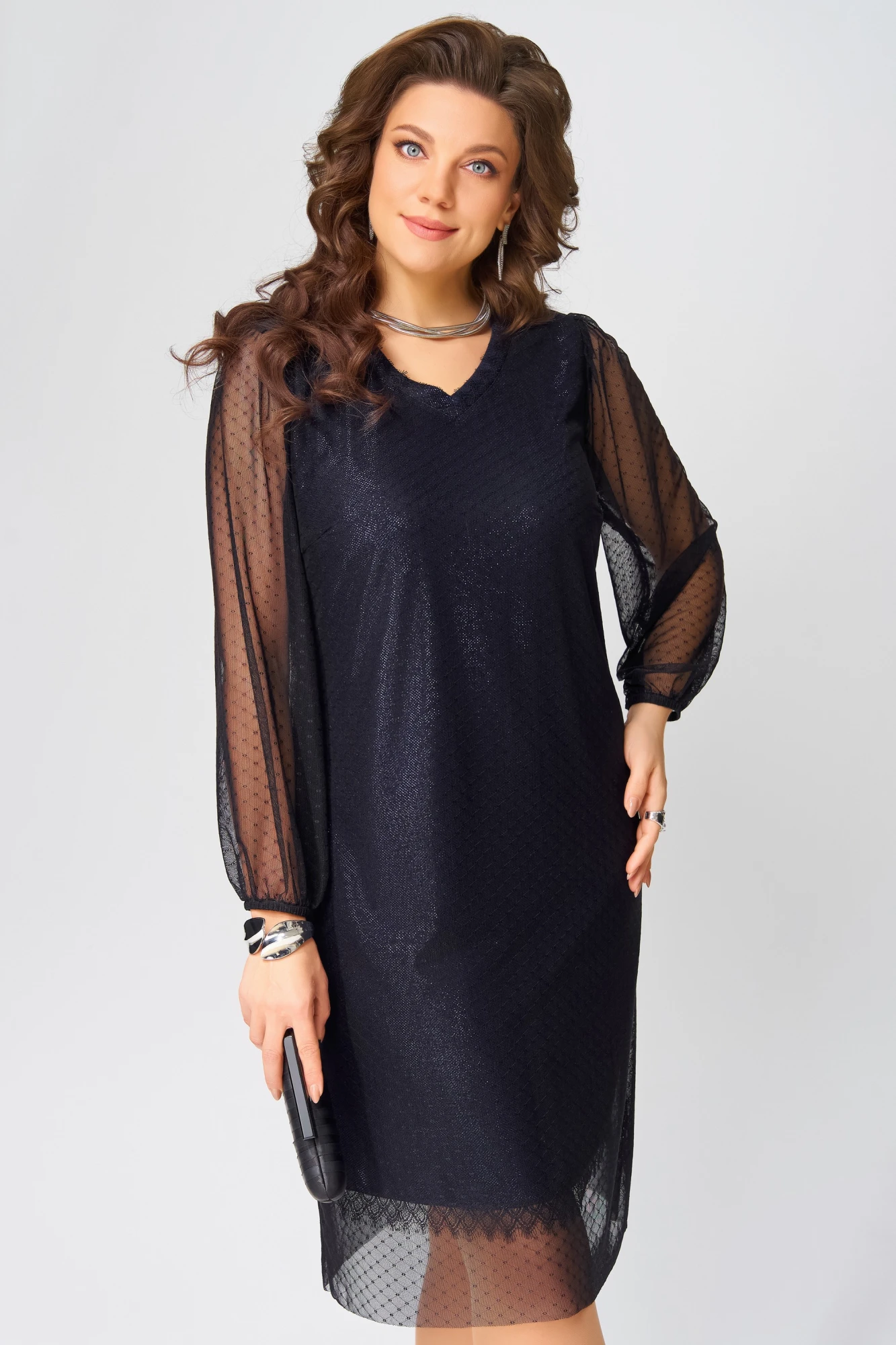 Элегантное платье прямого силуэта из трикотажного полотна с воздушной сеткой — идеальный выбор для праздничного выхода. Платье без подкладки.
