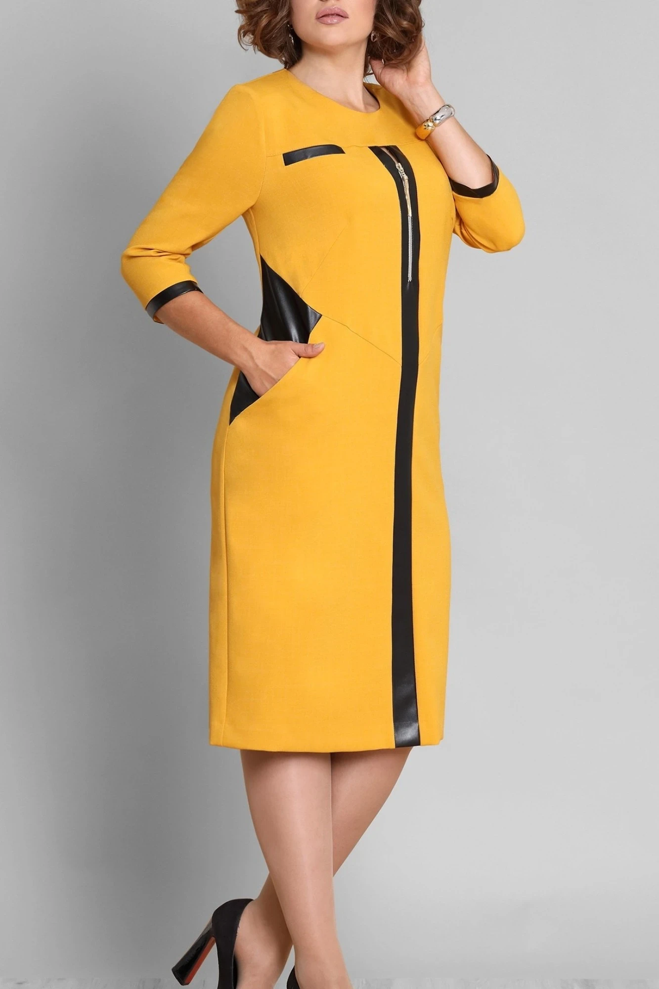 Очень стильное платье полуприлегающего силуэта на все случаи жизни. Перед с кокеткой и подрезами на уровне линии талии. В подрезах функциональные карманы. По переду вставлена декоративная металлическая молния с косичкой. Рукав втачной с манжетой из искусственной кожи. Спинка со средним швом и потайной молнией. По низу шлица.