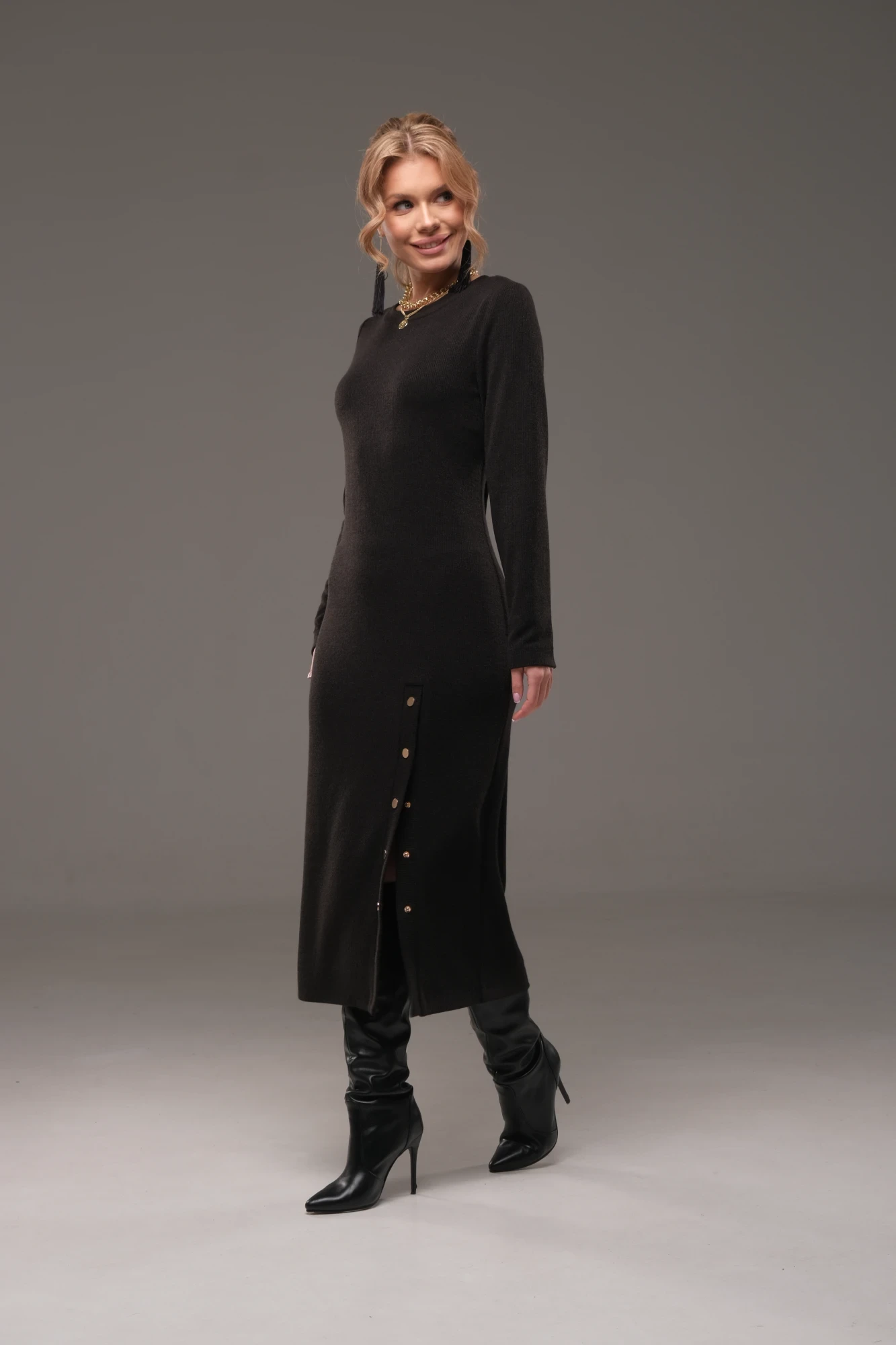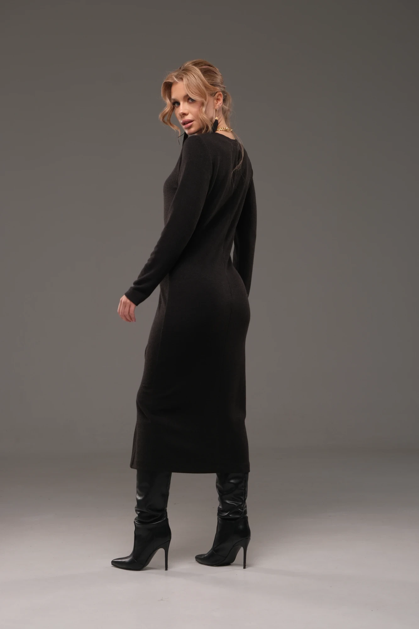 Рукава гладкие, одношовные. Горловина платья круглая."