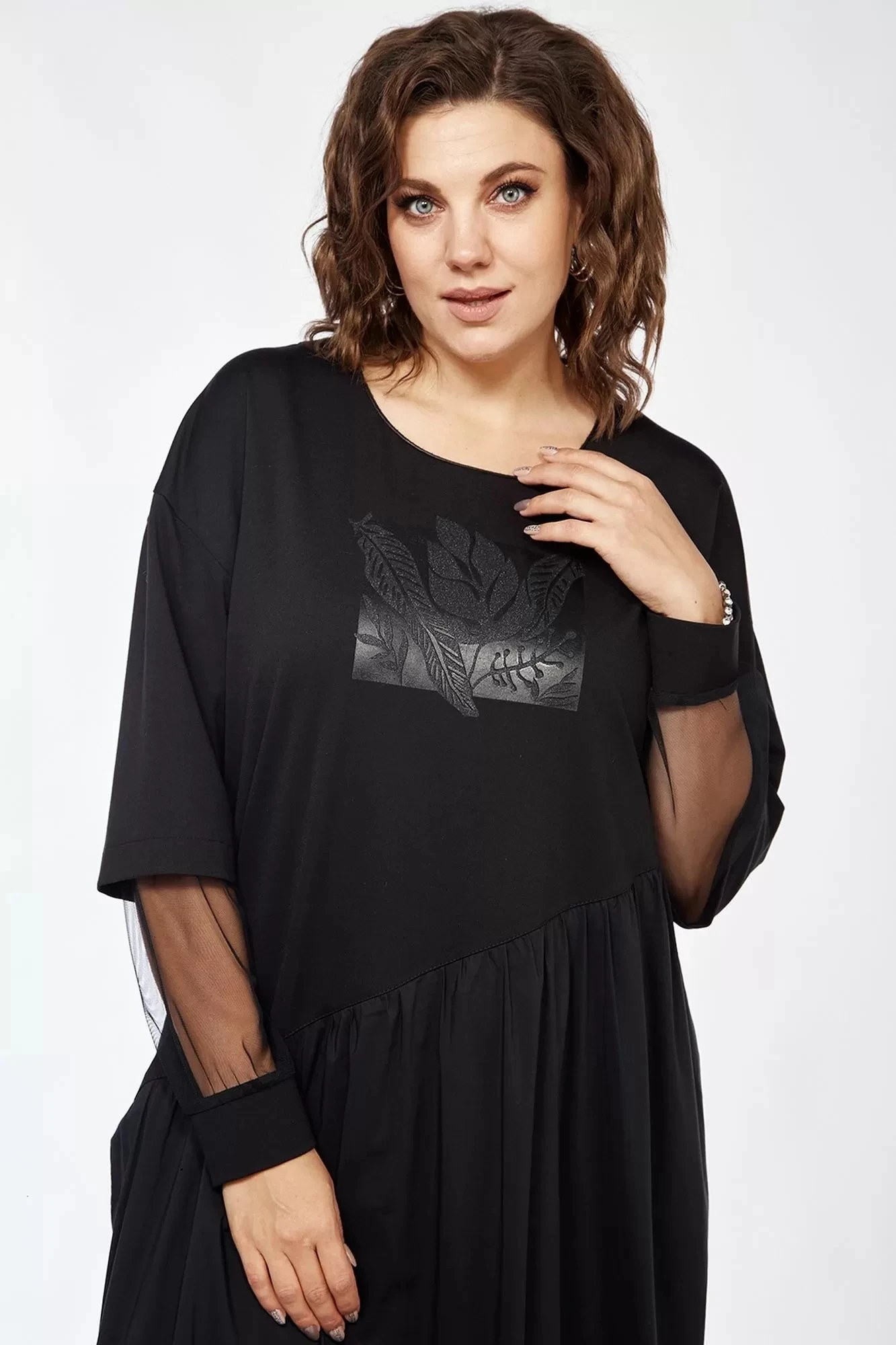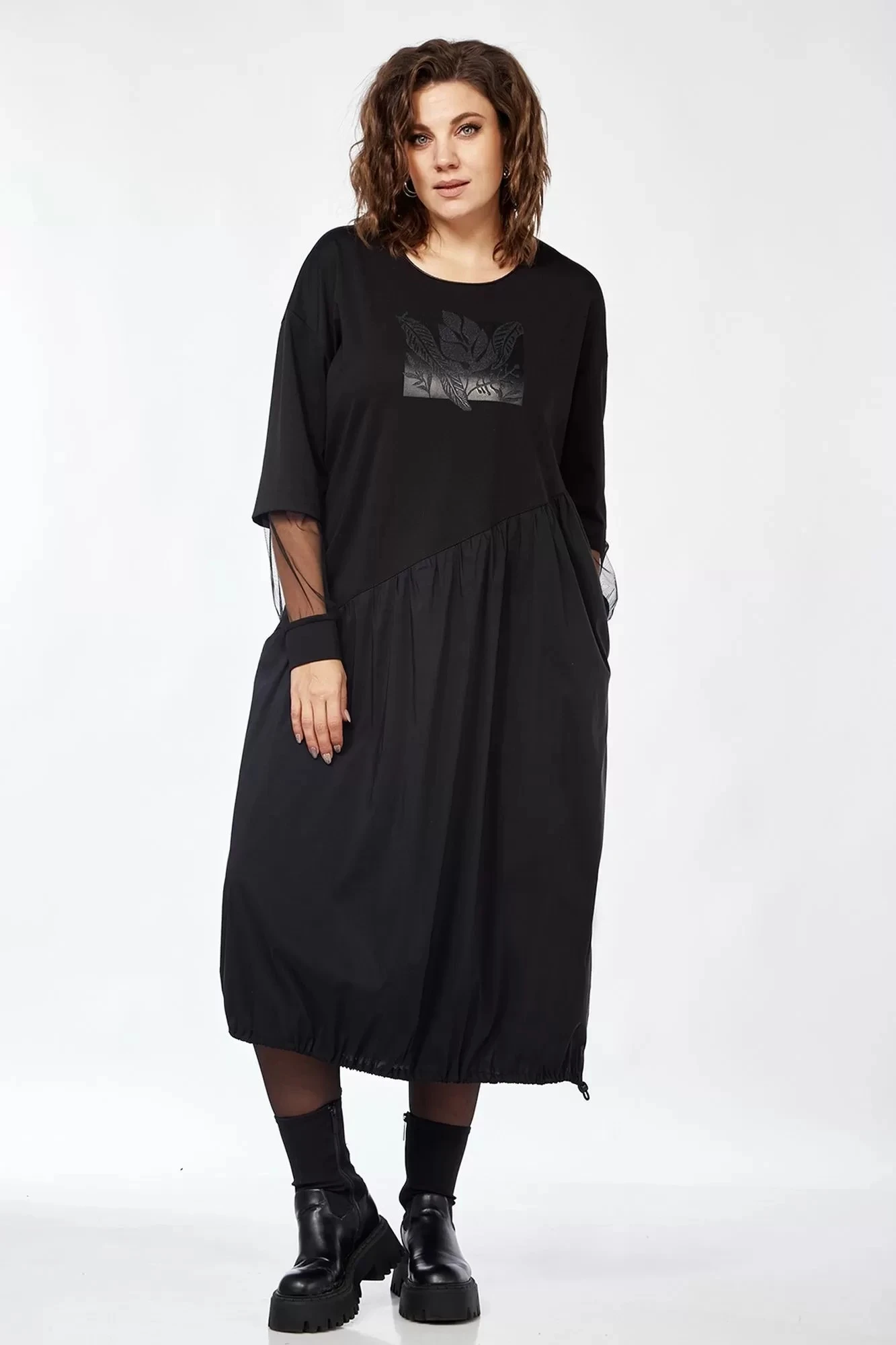 66Длина платье по спинке — 122 см, рукава — 50 см.