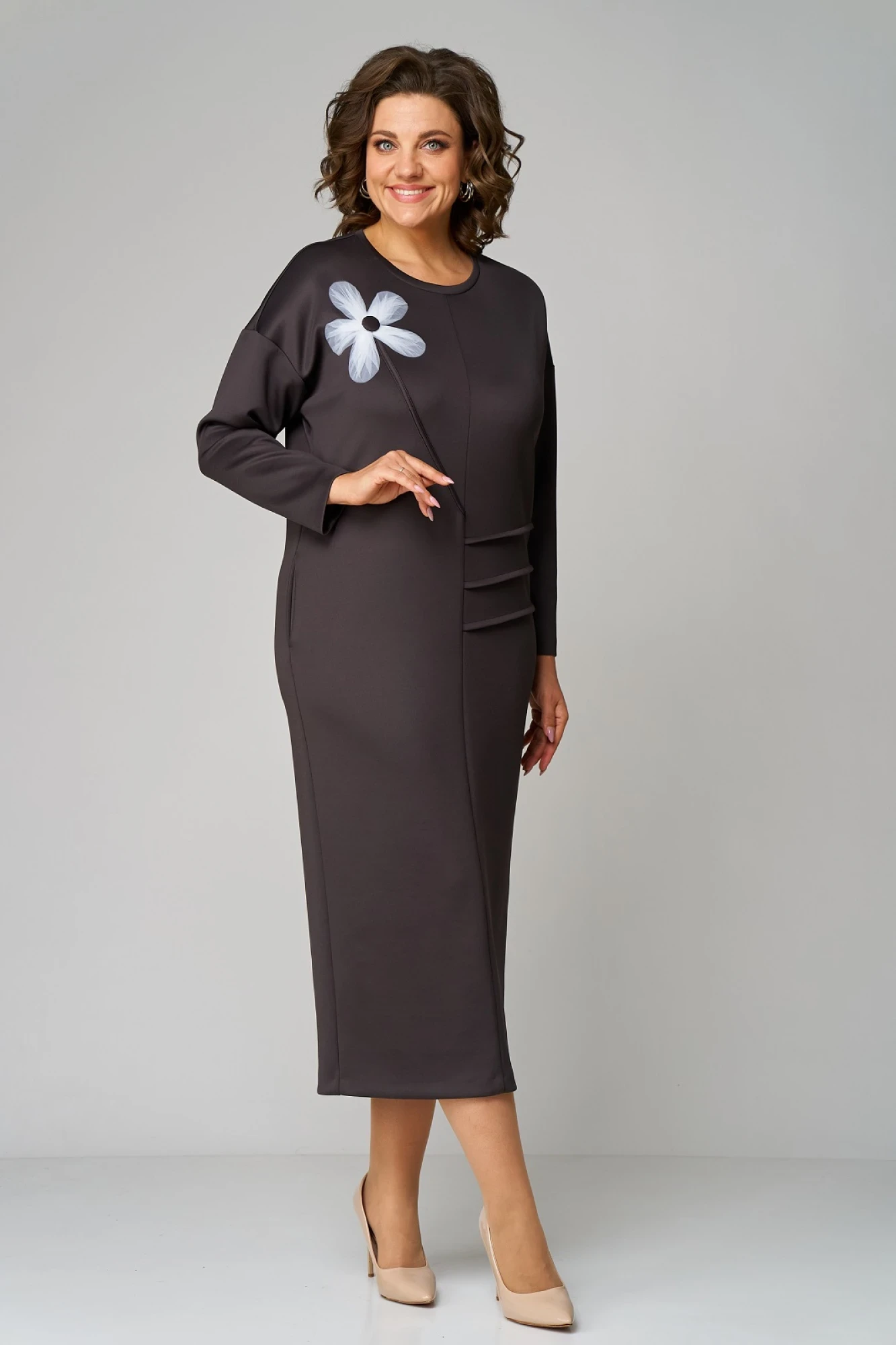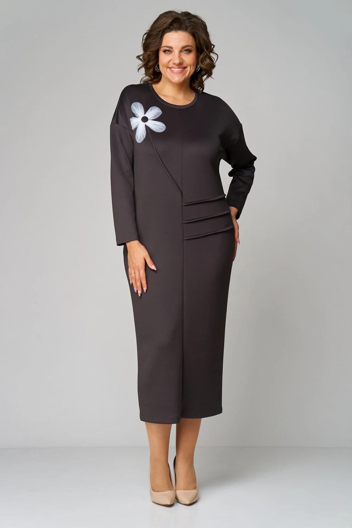 Силуэт прямой, вырез горловины круглый, линия плеча слегка