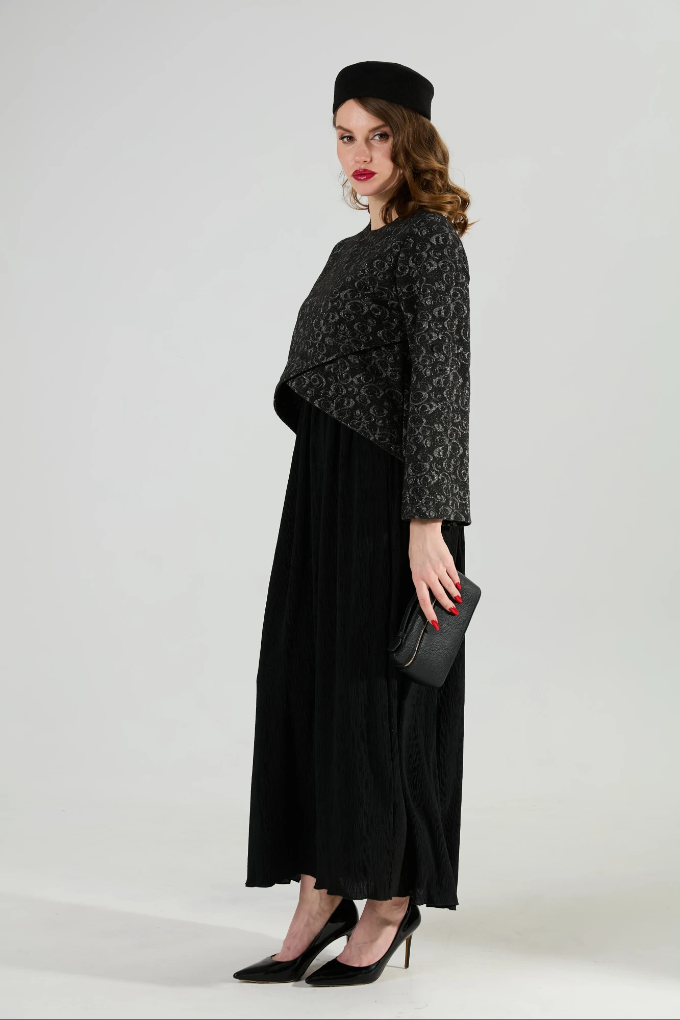 Платье NikVa 740-22 графитовая_абстракция_и_чёрный
