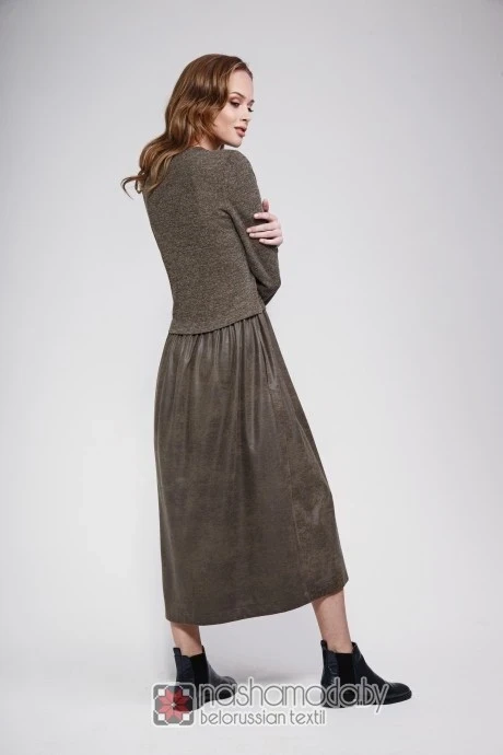 Платье прямого силуэта с карманами в боковых швах. Лиф из трикотажа. Низ платья из замши.