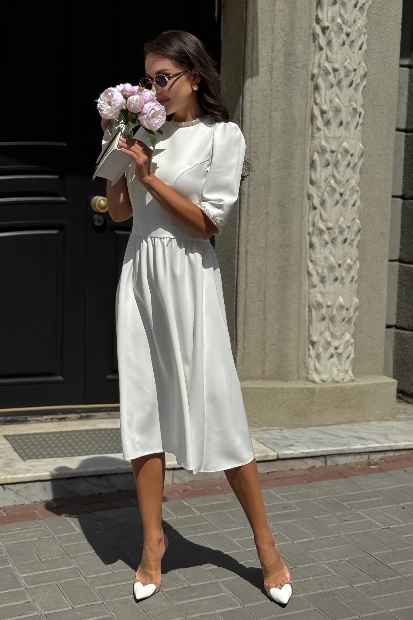 Рукава втачные, одношовные, короткие, обтачные по низу с отделочной тесьмой. Рукава по окату со сборкой, без подкладки.