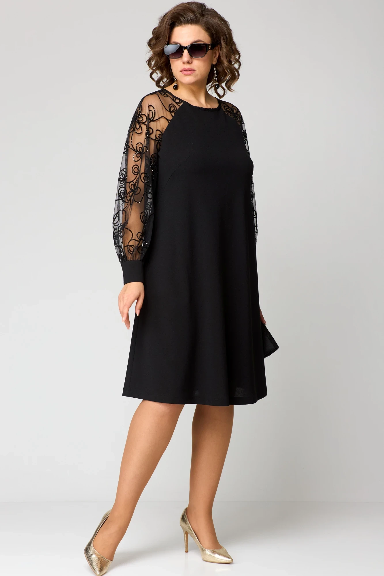 Вечернее платье с сеткой EVA GRANT 7279А черный+ кружево золото