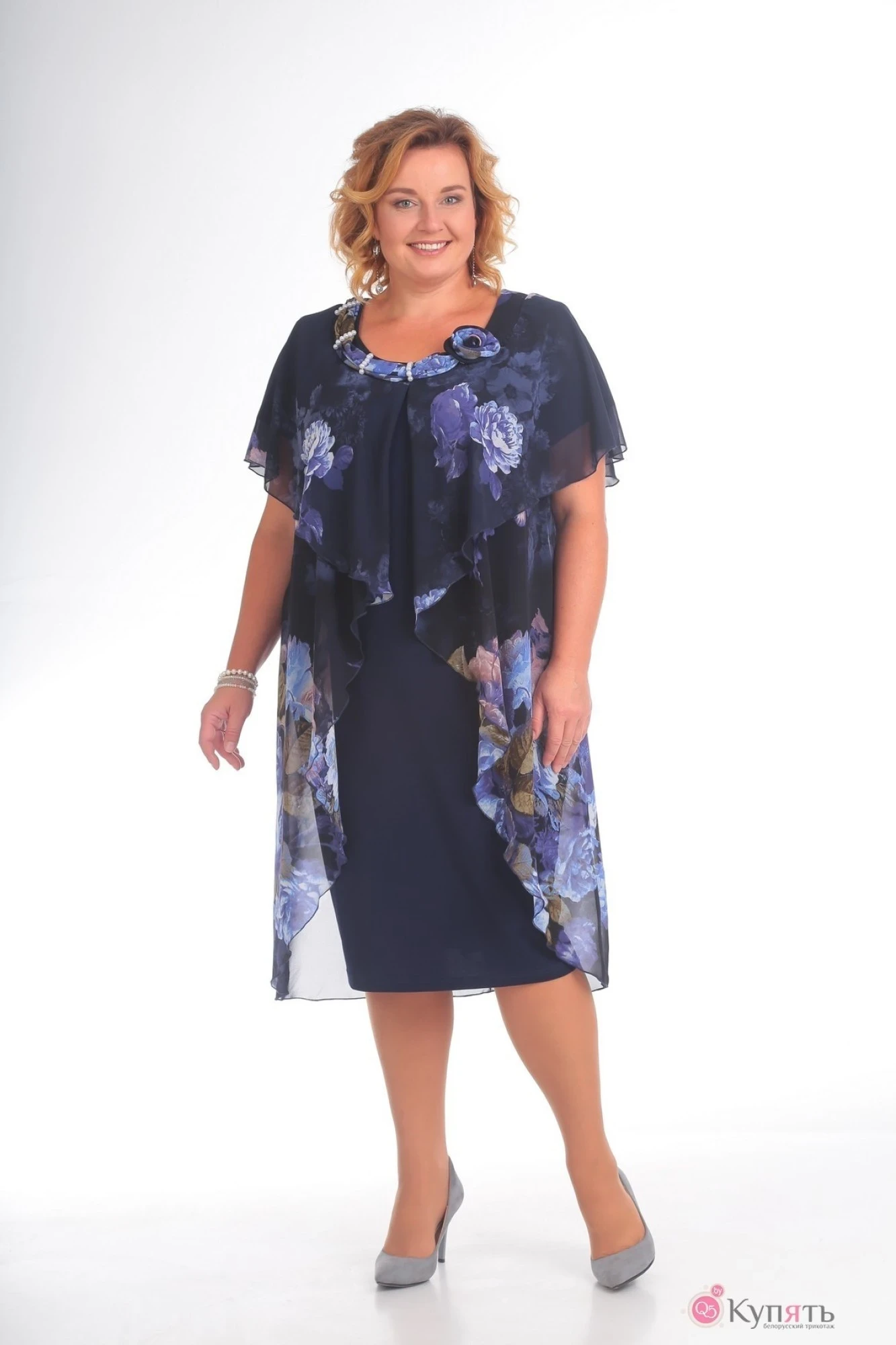 Оригинальное и очень женственное платье, способное стать настоящим украшением, как романтического вечера, так и торжественного мероприятия. Модель свободного покроя с шифоновой пелериной, закрепленной спереди и на спинке в горловине, переходящей в отлетные передние детали, создают эффект летящей лёгкости. Глубокий вырез горловины спереди украшен шарфом, протянутым сквозь шлевки из бус и цветком ручной работы.