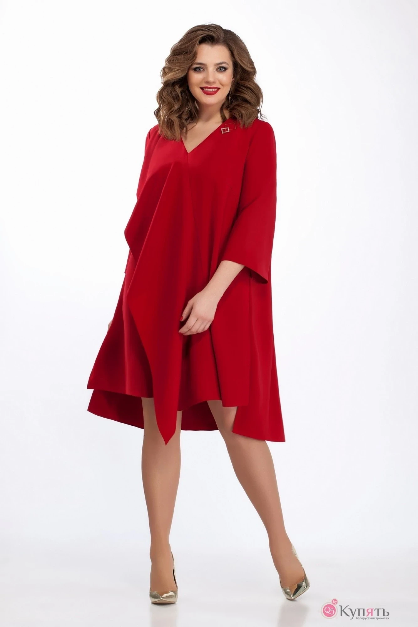 Платье прямо силуэта с втачным рукавом, слегка расширенным к низу по шву. На спинке две мягкие складки, выходящие из горловины, закреплены вверху отделочной строчкой с тремя декоративными пуговицами. По переду V-образный вырез. По правой стороне переда отлетная деталь до линии низа. Спинка немного длиннее переда, в боковых швах невысокие разрезы.