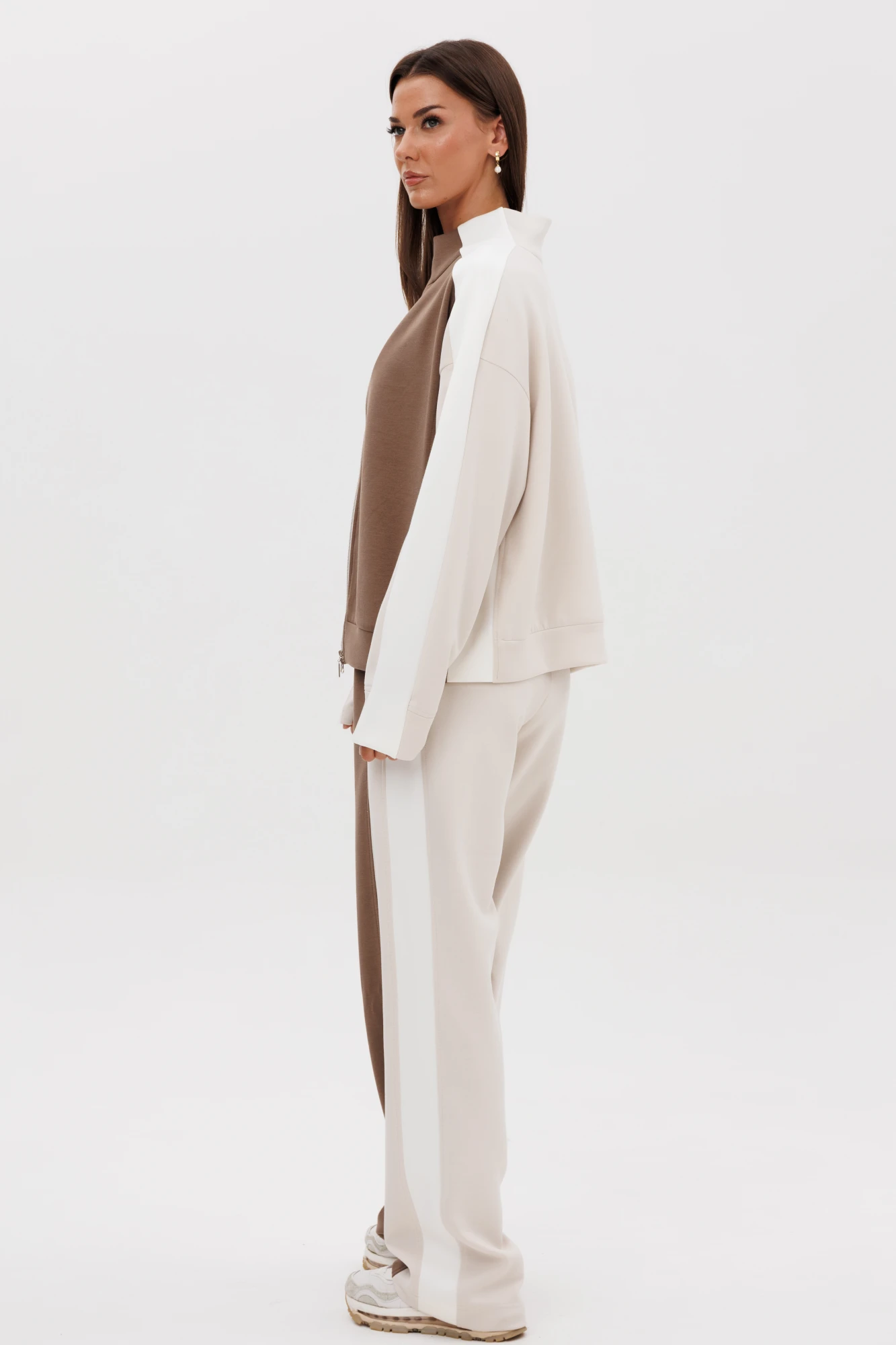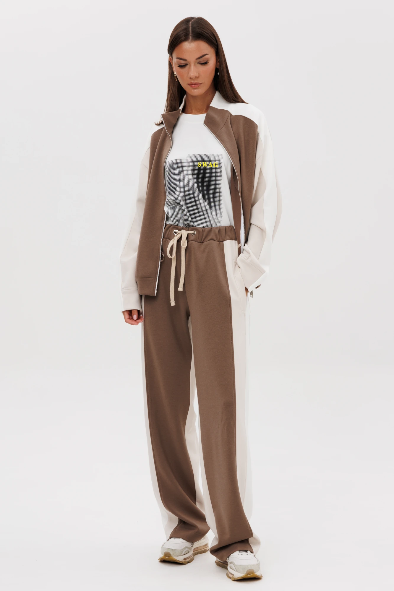 Брюки в расслабленном стиле. Высокая посадка, боковой карман с листочкой, эластичный пояс с люверсами и отделочным шнуром. Длина брюк около 104 см"