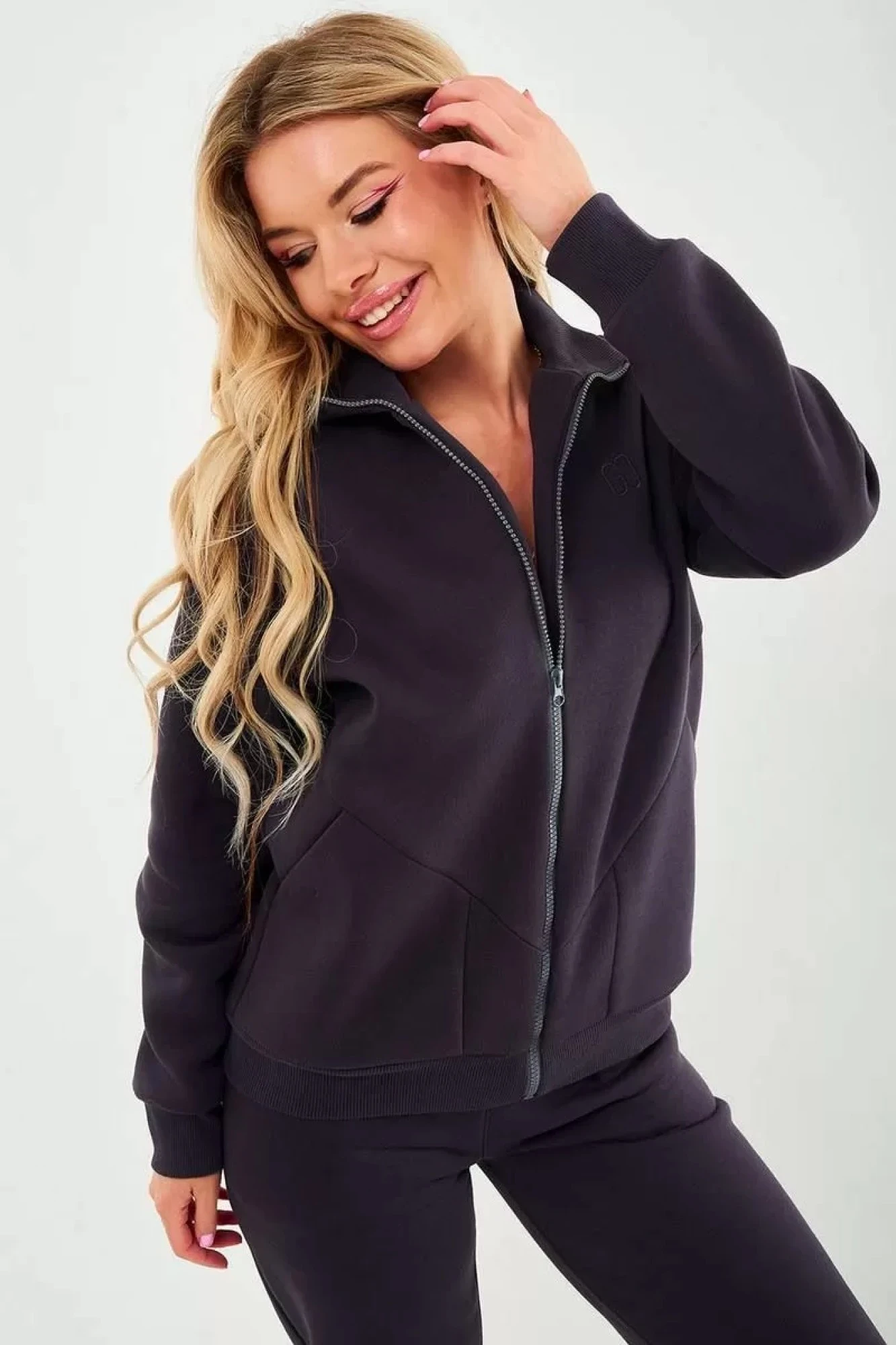 Длина брюк по боковому шву с поясом: 98-100 см для роста 164-170 см, 101-103 см для роста 170-176 см.