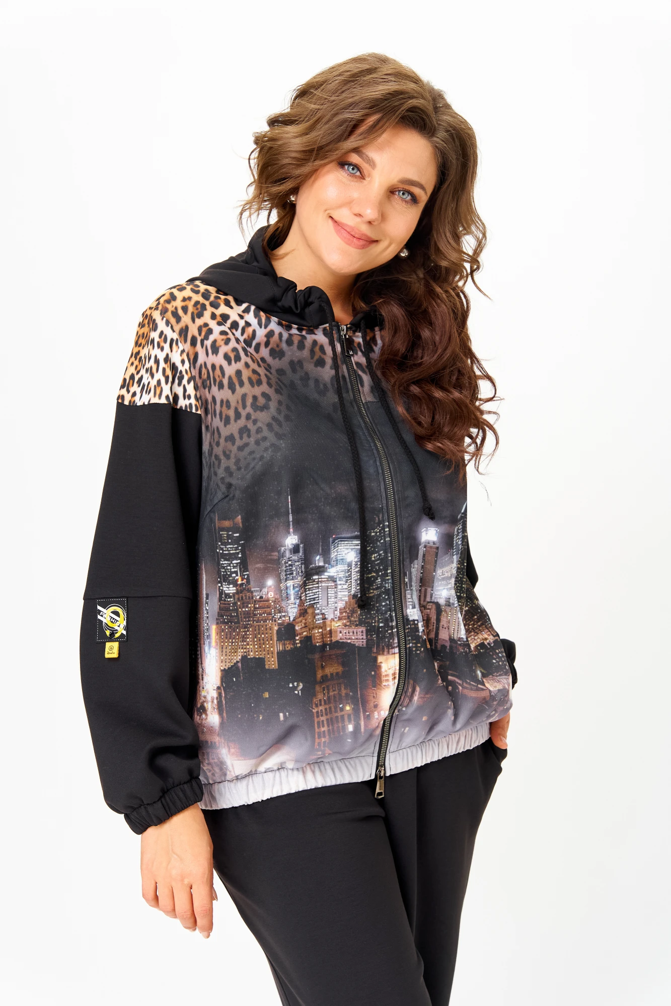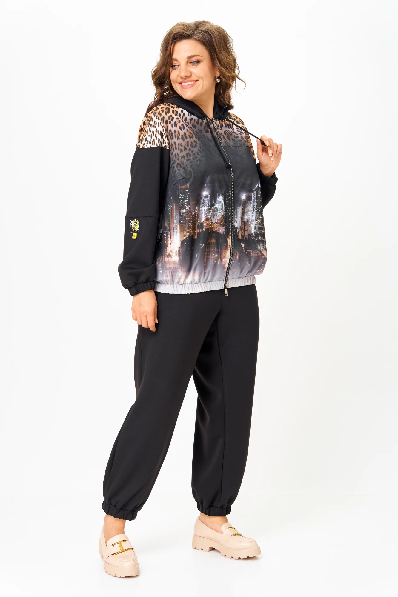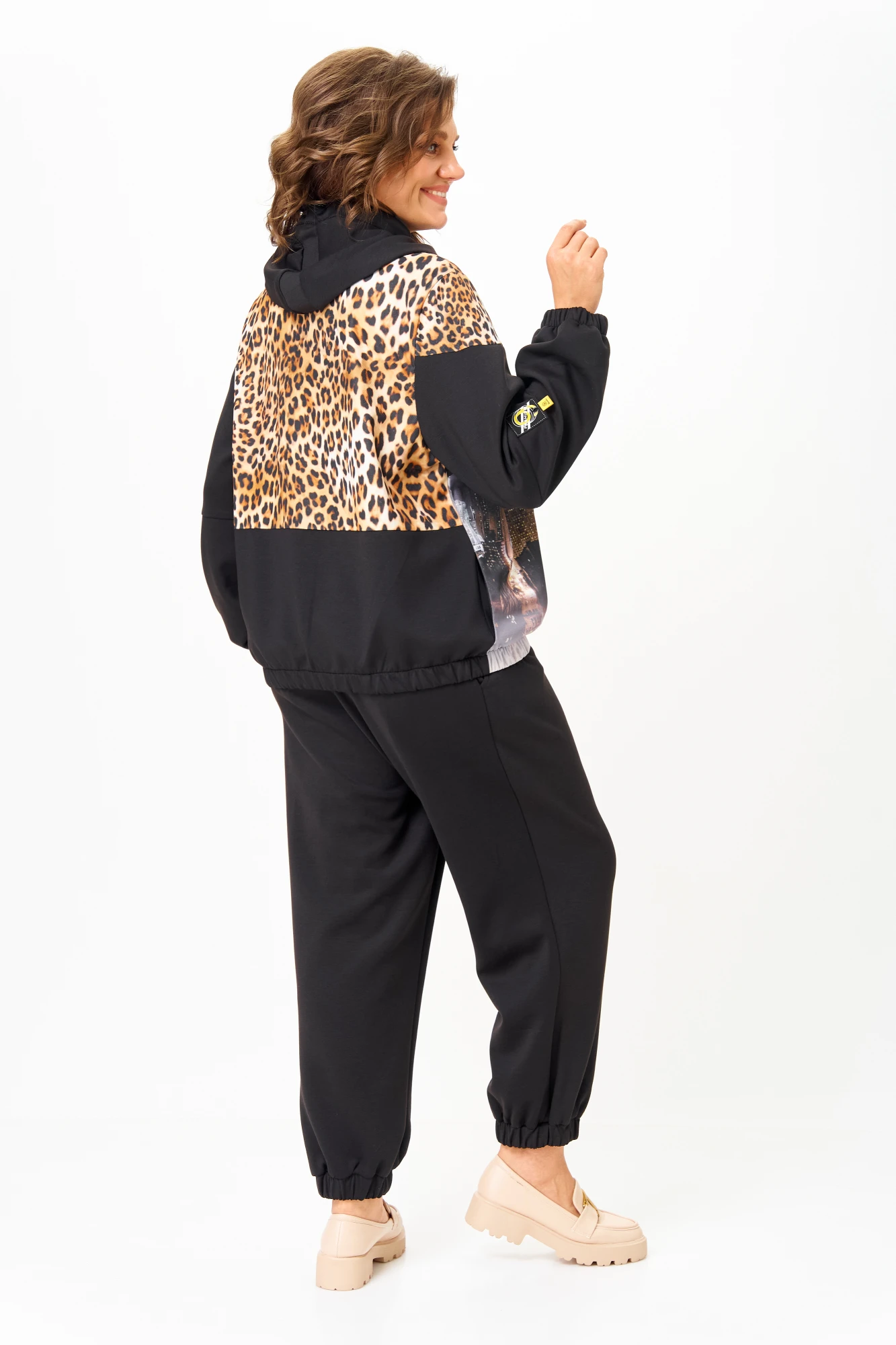 Спортивный костюм SolomeaLux 946/449 черный+ леопардовый_принт двойка