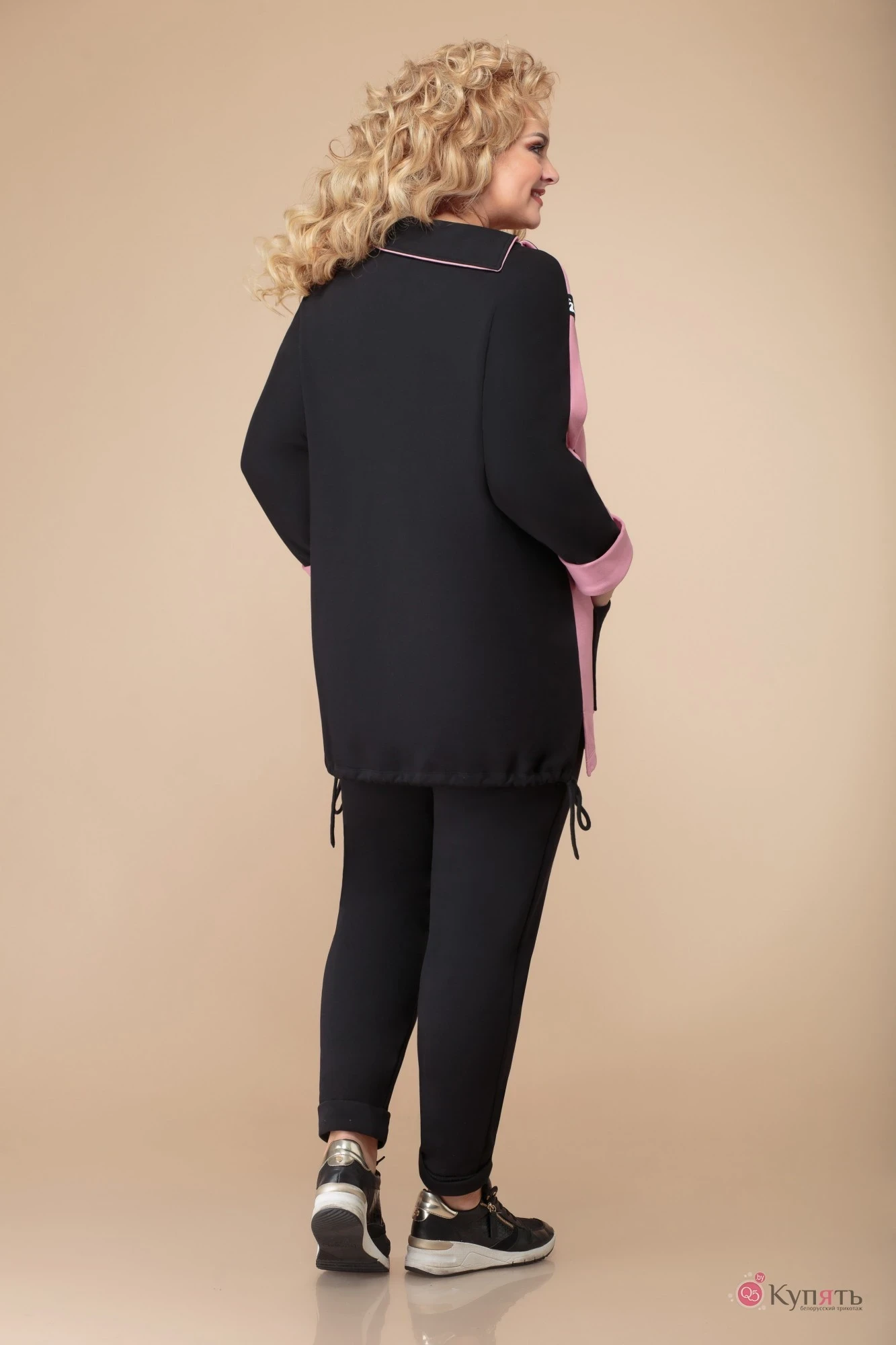 Туника прямого силуэта. Покрой рукава «летучая мышь». Рукав длиной 7/8, заканчивающийся манжетой. По переду два накладных кармана. По правой полочке и левому рукаву настрочена отделочная тесьма. По низу спинки кулиса. Низ переда разноуровневый.
