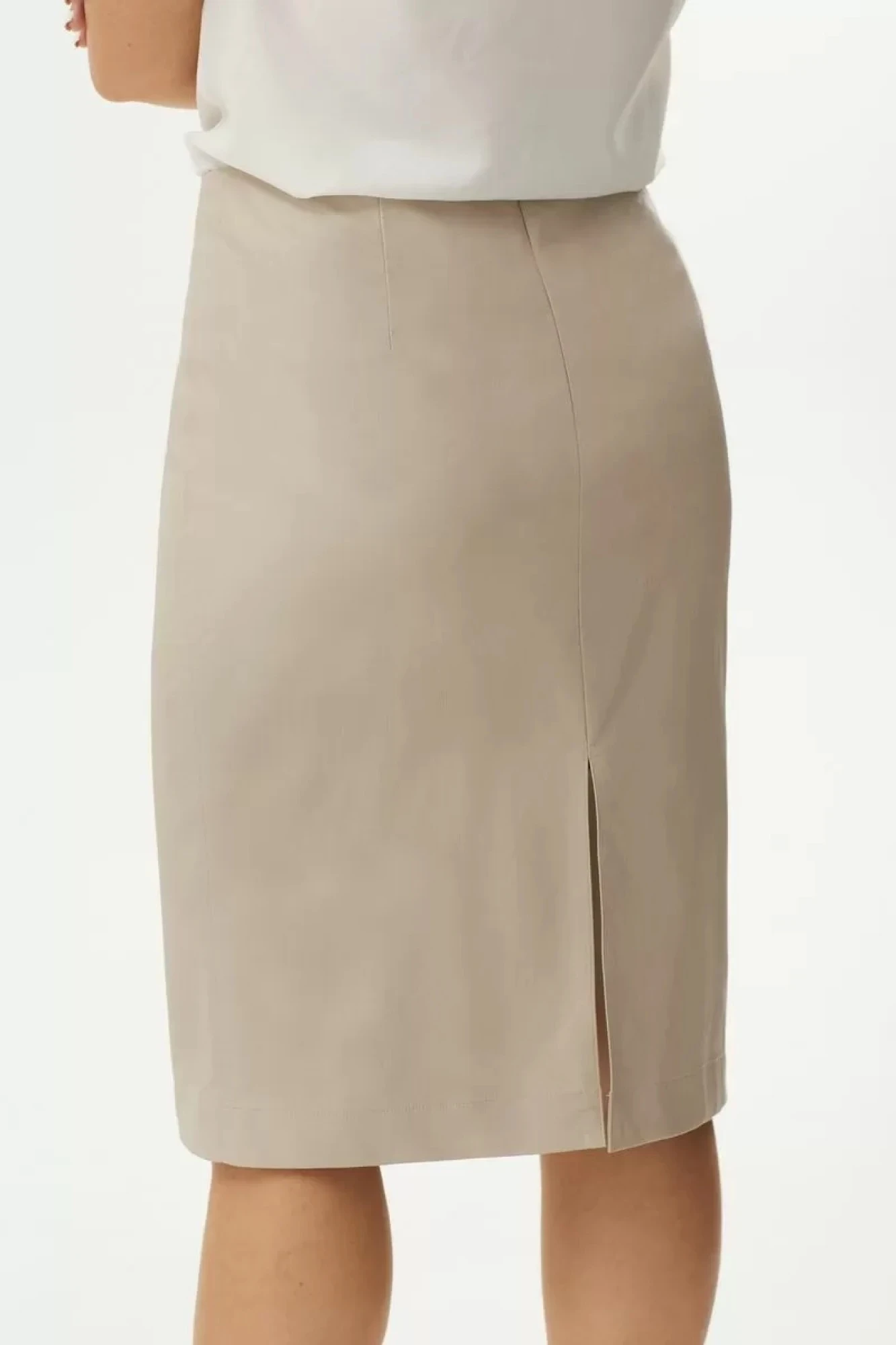 Юбка –карандаш, зауженная к низу, выполнена из экокожи. Верх на обтачке. Перед и спинка с вытачками. На спинке средний шов с застежкой на тесьму-молния и разрезом. Юбка на подкладке.