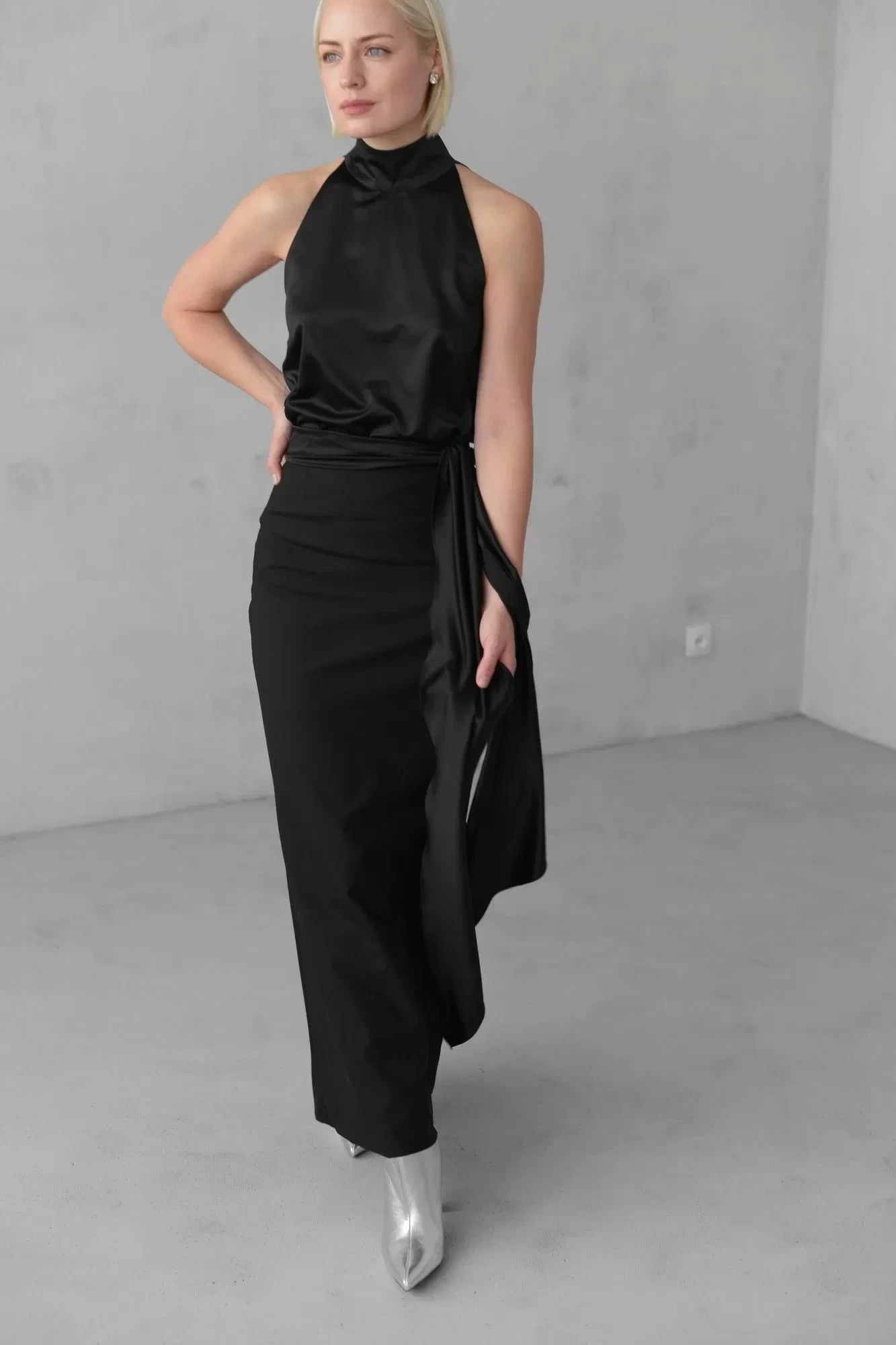 Модель на фото размера S, рост 170 см, размер брюк S."