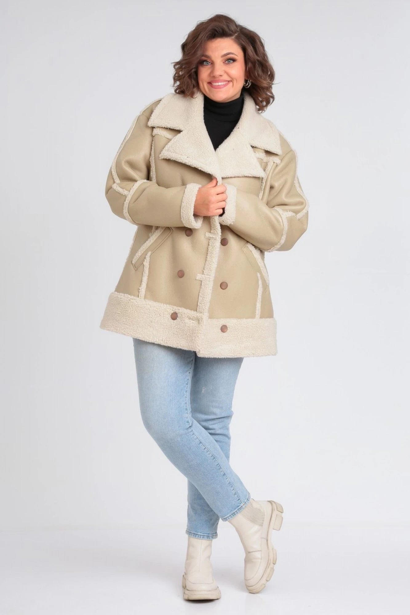 Полочка и спинка разрезные с кокеткой. Полочка с рельефами и разрезными карманами в рамку. Застежка центральная двубортная на петли и пуговицы. Воротник отложной. Рукав втачной разрезной со спущеным плечом. В модели есть прибавка на верхнюю одежду.