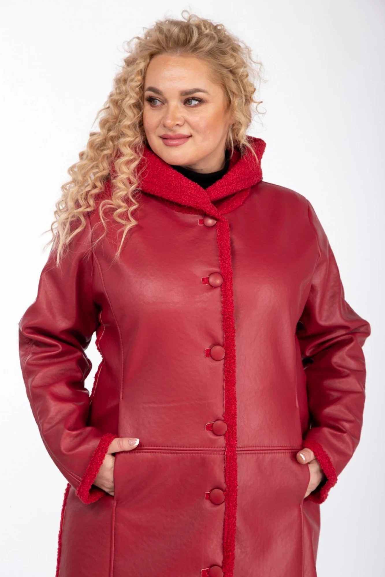 Полочка и спинка отрезные чуть ниже линии талии. В рельефе полочки обработаны карманы. Застежка центральная на петли и пуговицы. Дубленка с капюшоном. Рукав втачной двухшовный. В модели есть прибавка на верхнюю одежду.