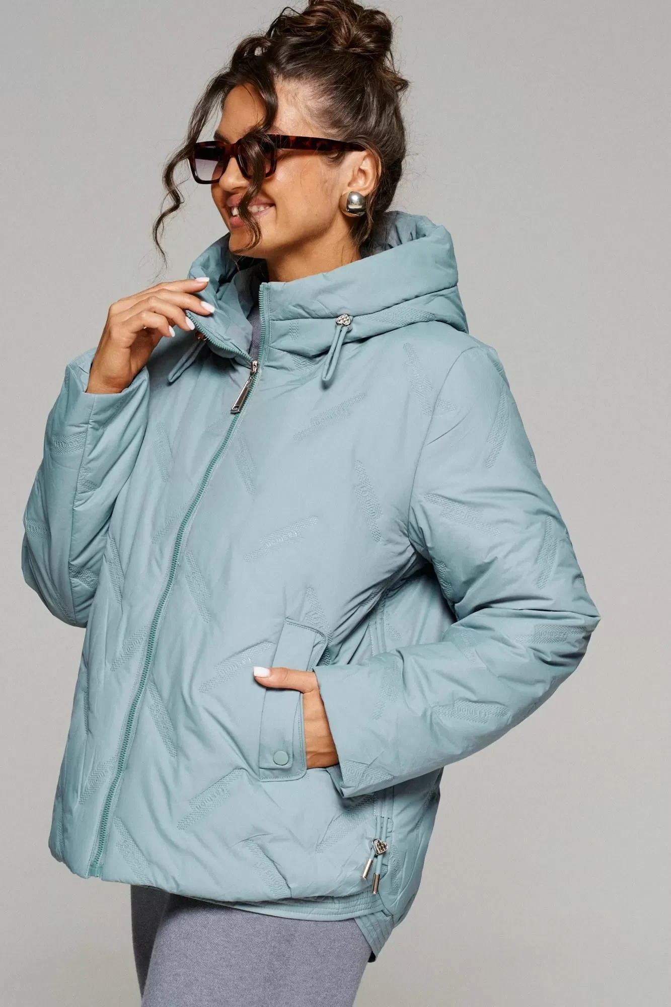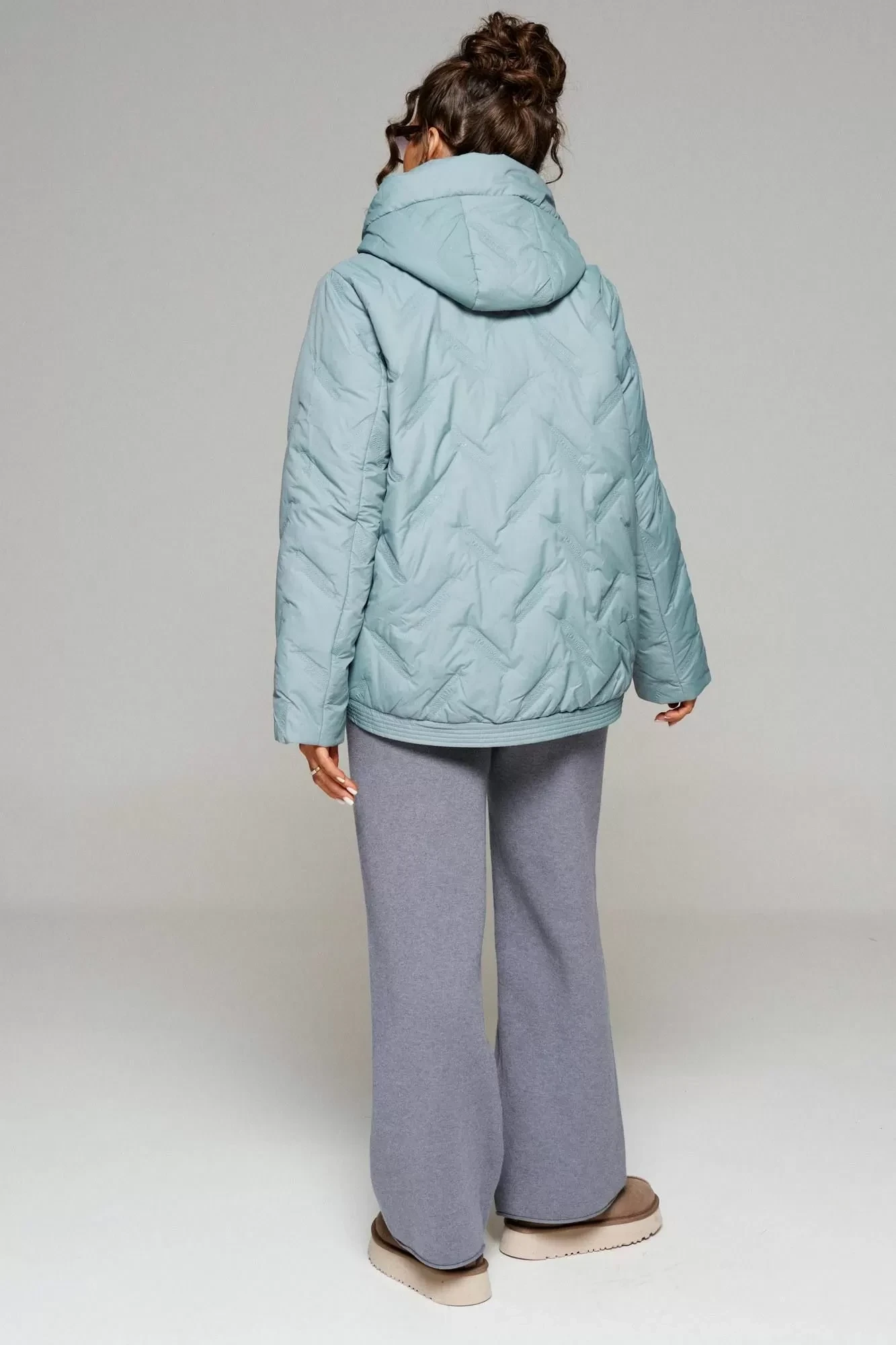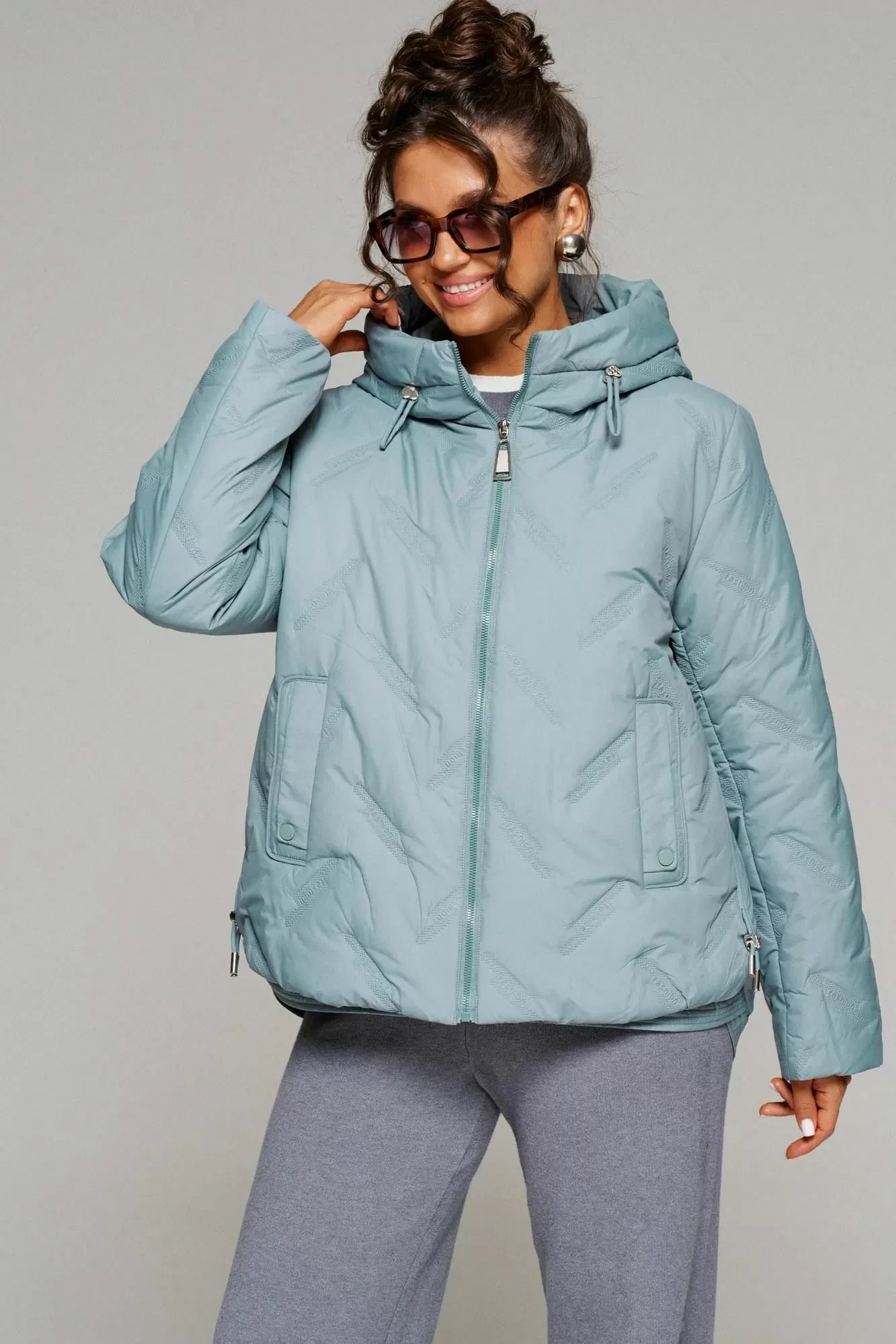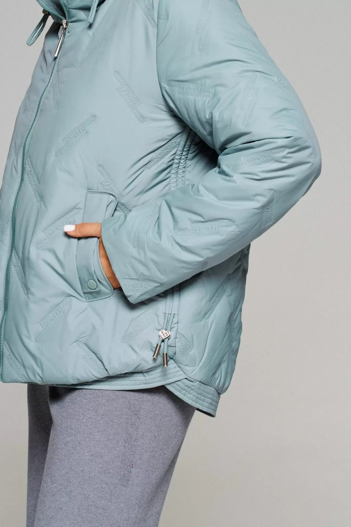Застежка центральная на декоративную молнию с ветрозащитной планкой внутри. Длина молнии от верхней части капюшона до нижнего края изделия.