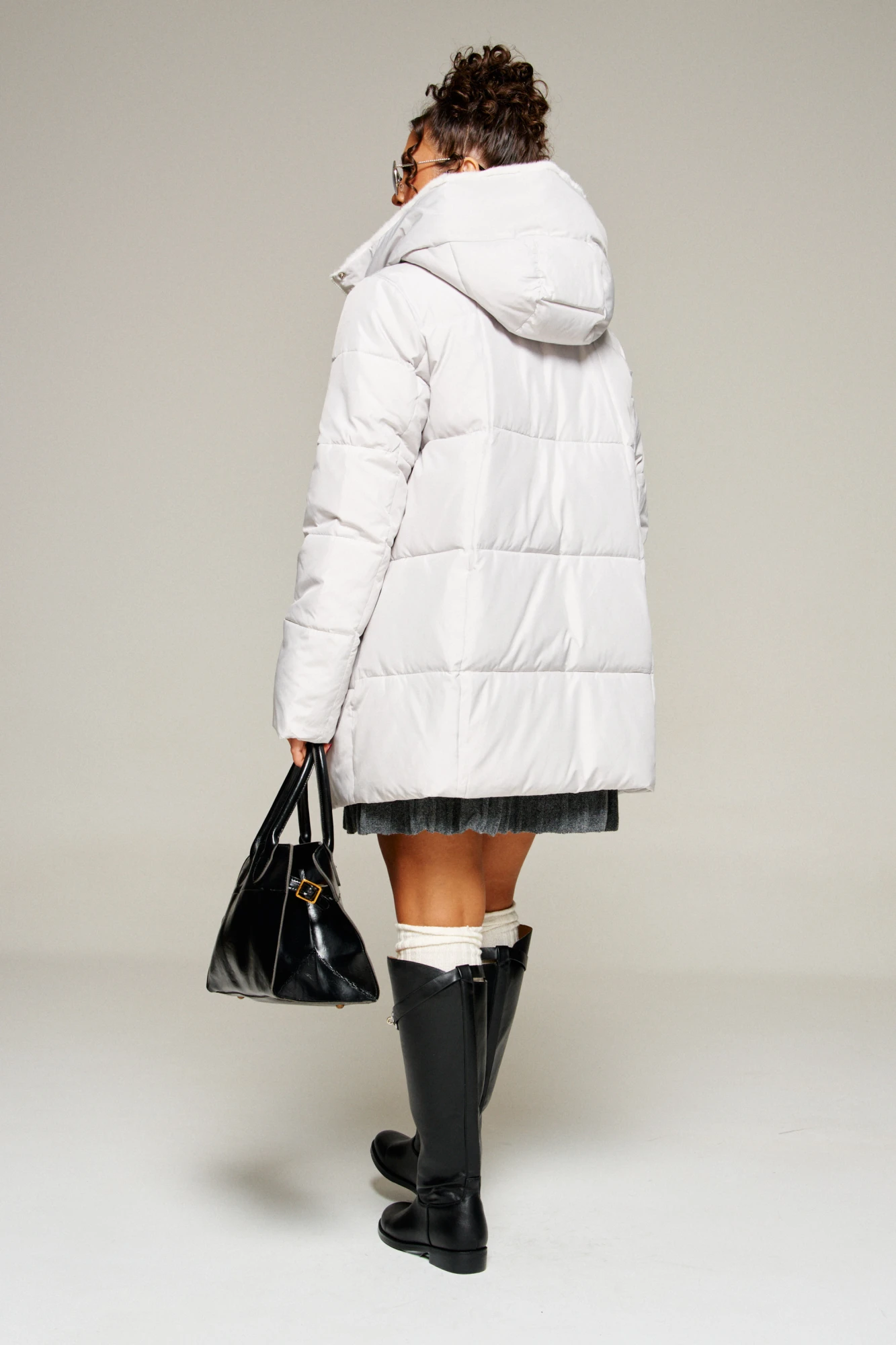 Пальто выполнено из прочной, влагостойкой и приятной на ощупь полиэстерной ткани; на синтетической подкладке. Утеплитель холлофайбер 250 г/м. кв. предназначен для использования изделия при температурном режиме от -10 до -25 градусов.