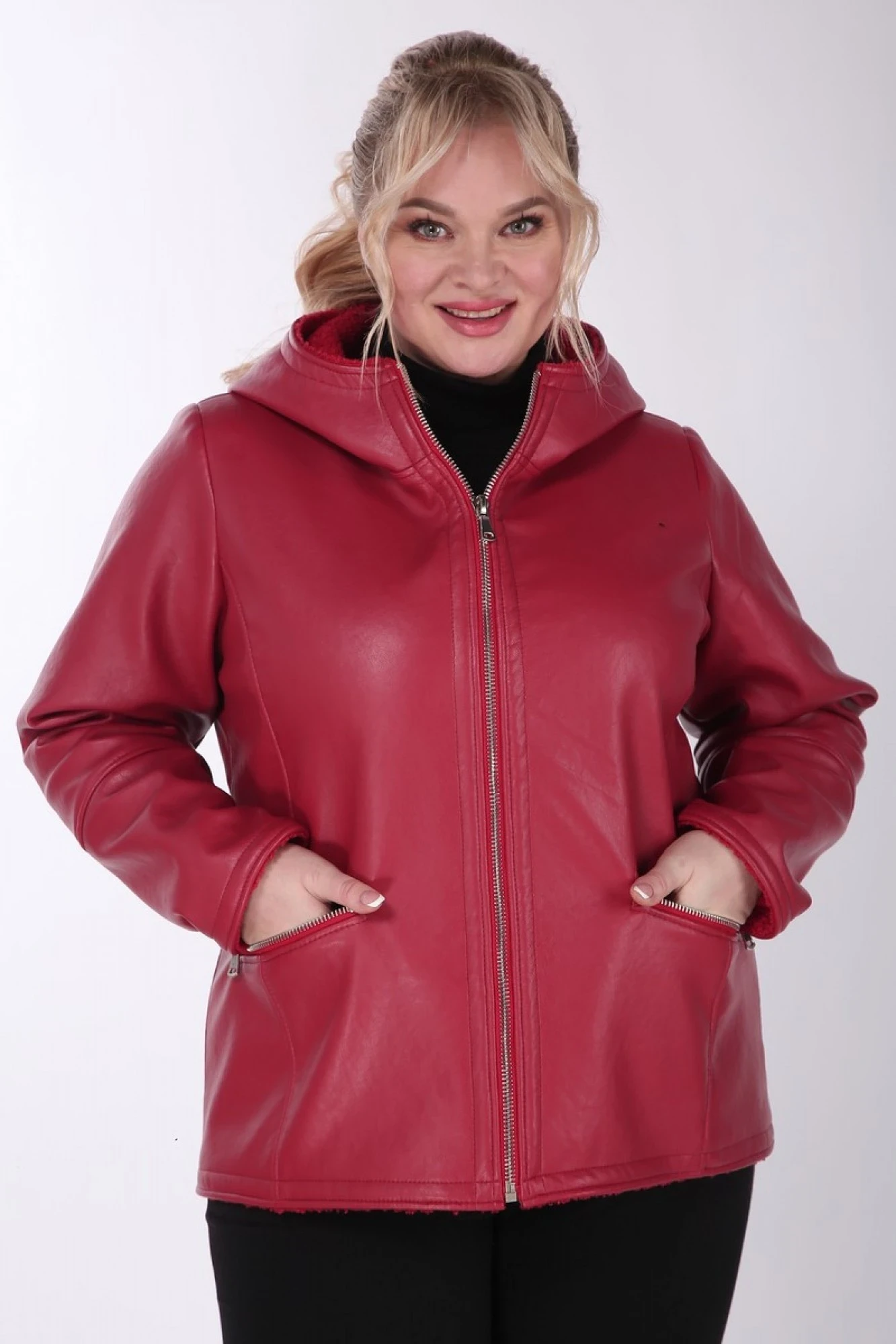 Изделие выполнено из высококачественной мягкой экокожи, которая не трескается и не растягивается, в отличие от натуральной кожи. Все молнии на изделии металлические. Куртка без подкладки и утеплителя.