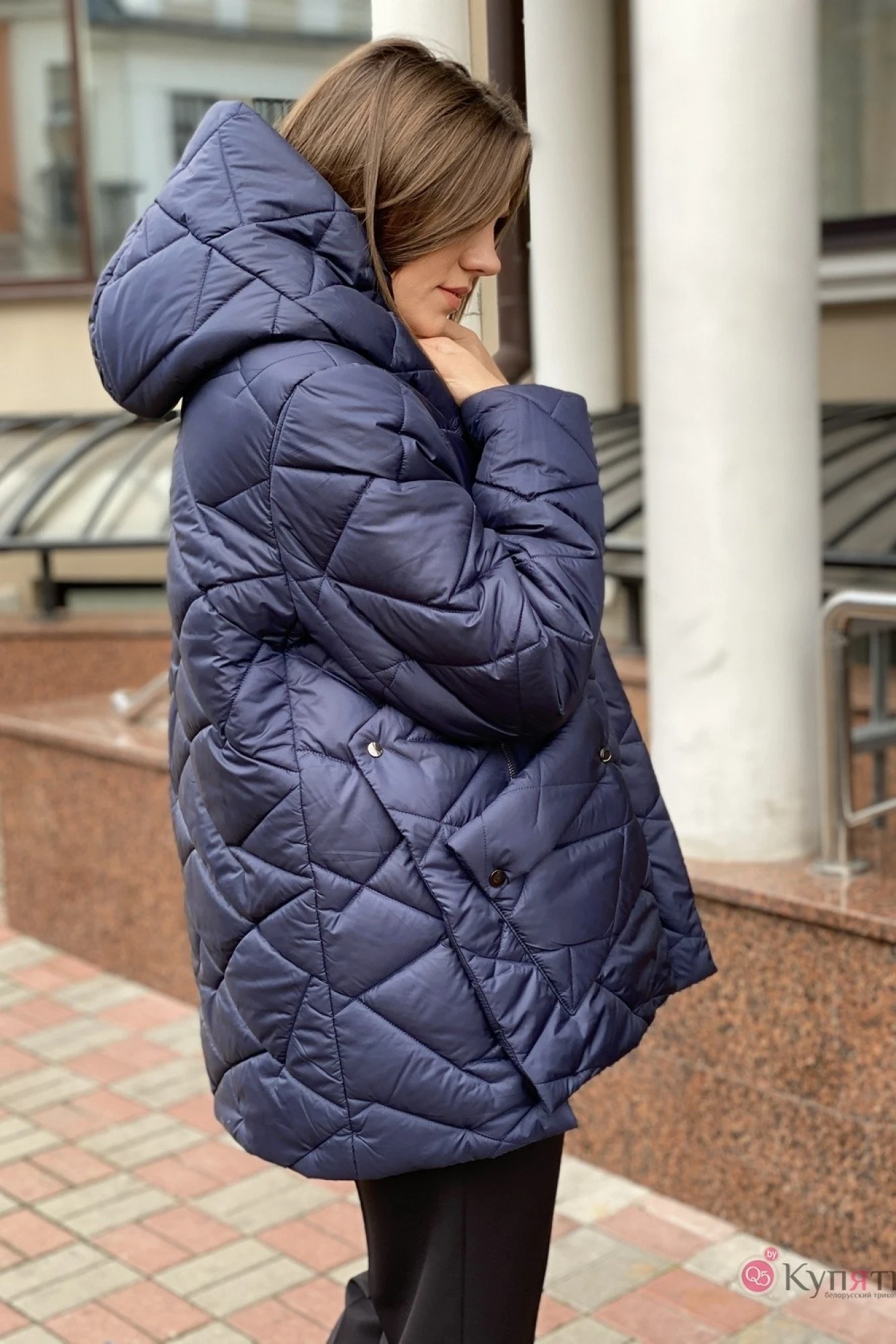 по переду средней части куртки прорезные карманы на молнии, в нижней части накладные карманы, низ фигурный.