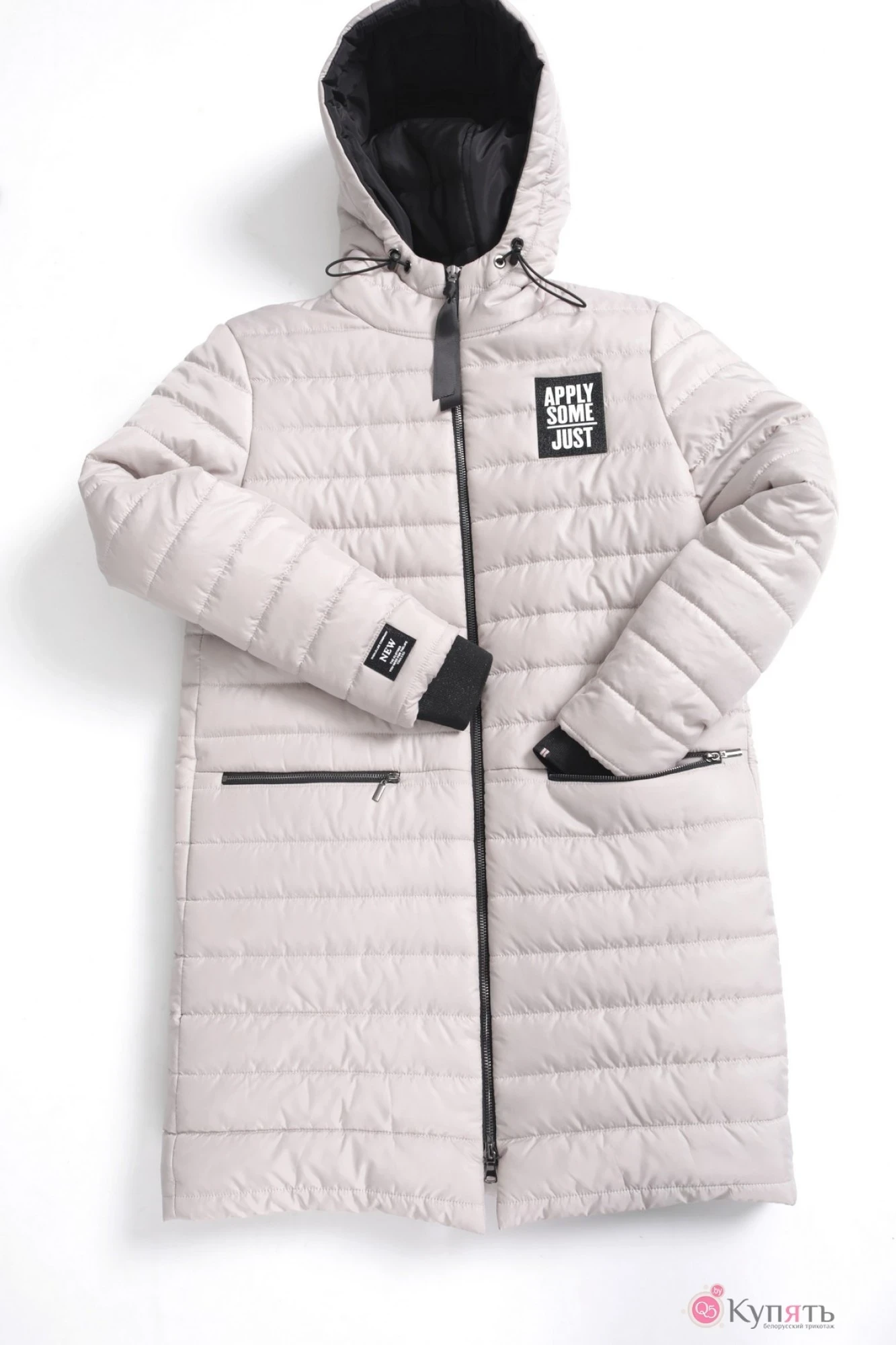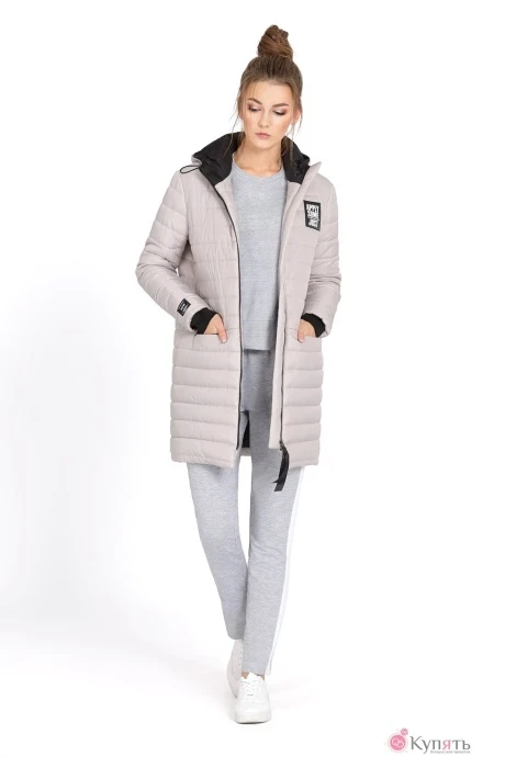 Удлиненная стеганая куртка прямого силуэта, утепленная синтепоном. Детали: застежка на металлическую молнию, втачной капюшон, перед с прорезными карманами на молнии, рукава с притачными трикотажными манжетами