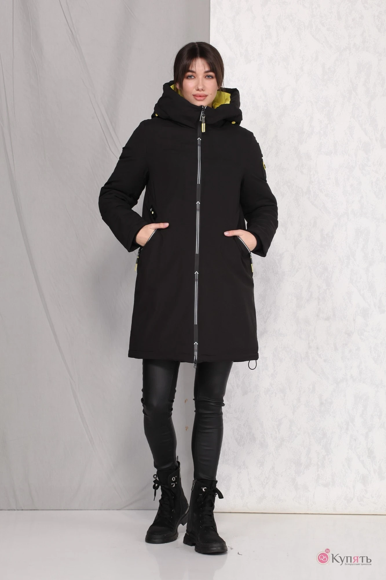 Застежка имеет длину от линии низа до верхнего края капюшона.