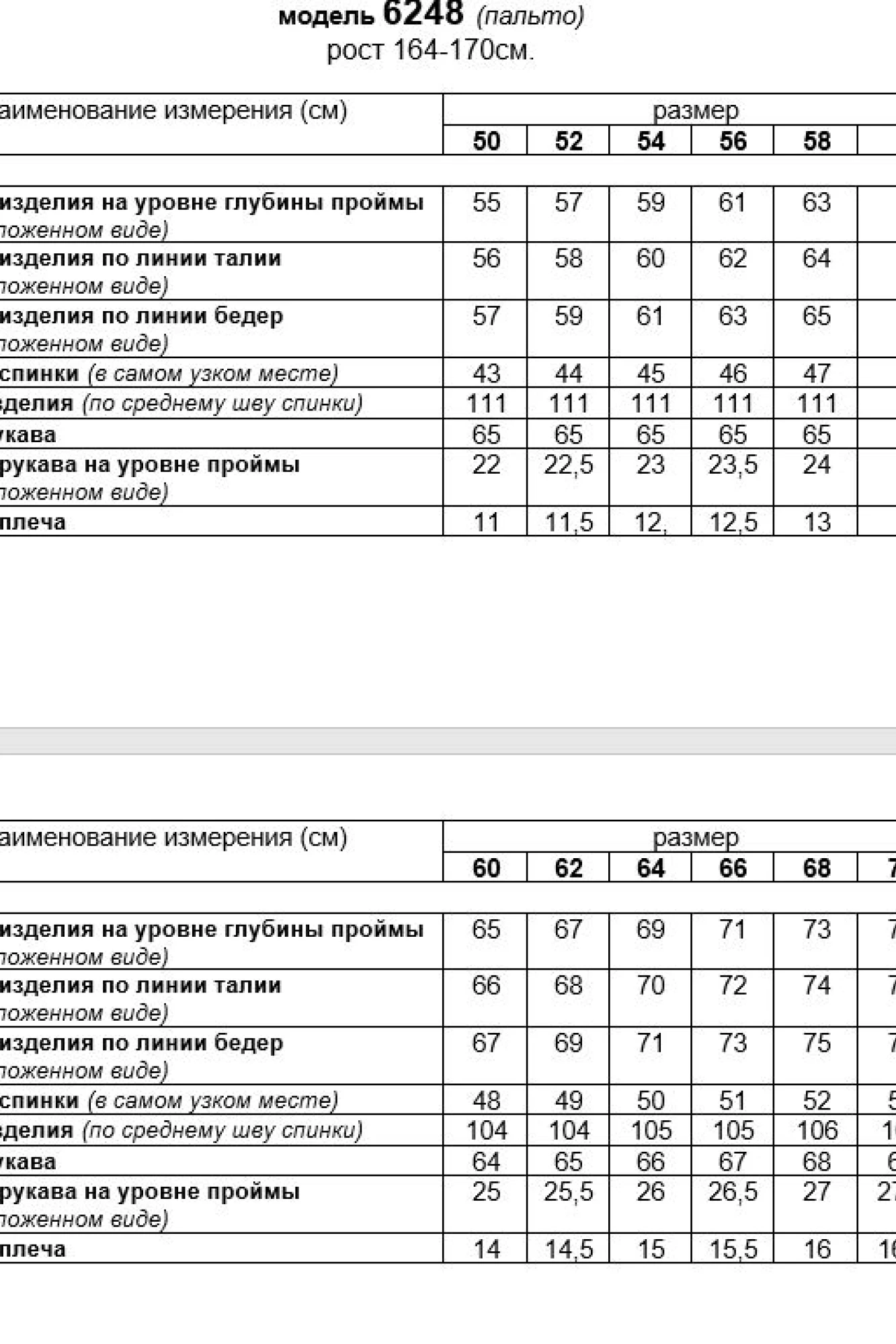 Длина (по среднему шву спинки) = 111 см. (+1см.)