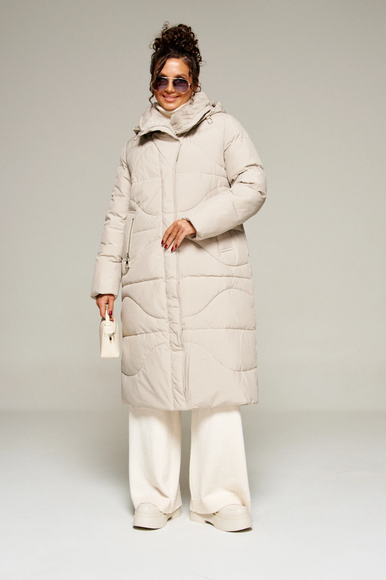 Пальто выполнено из прочной, влагостойкой и приятной на ощупь полиэстерной ткани; на синтетической подкладке. Утеплитель холлофайбер 250 г/м. кв. предназначен для использования изделия при температурном режиме от -10 до -25 градусов.