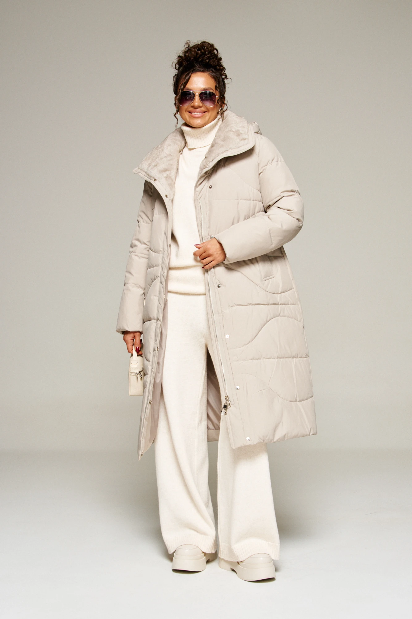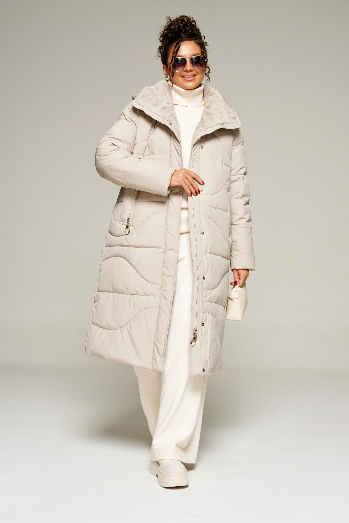 Воротник тип «апаш» с возможностью застегивания до верха. Внутренняя часть воротника обработана искусственным мехом «норка».