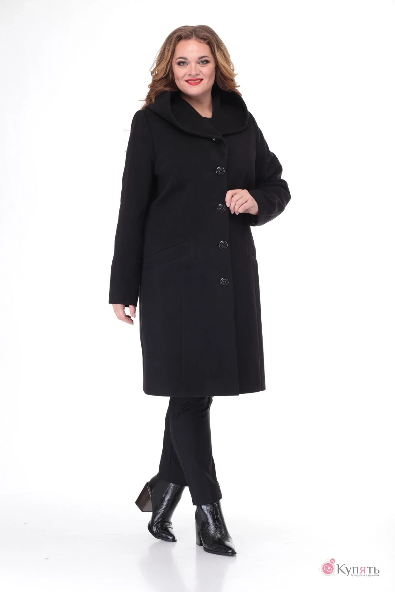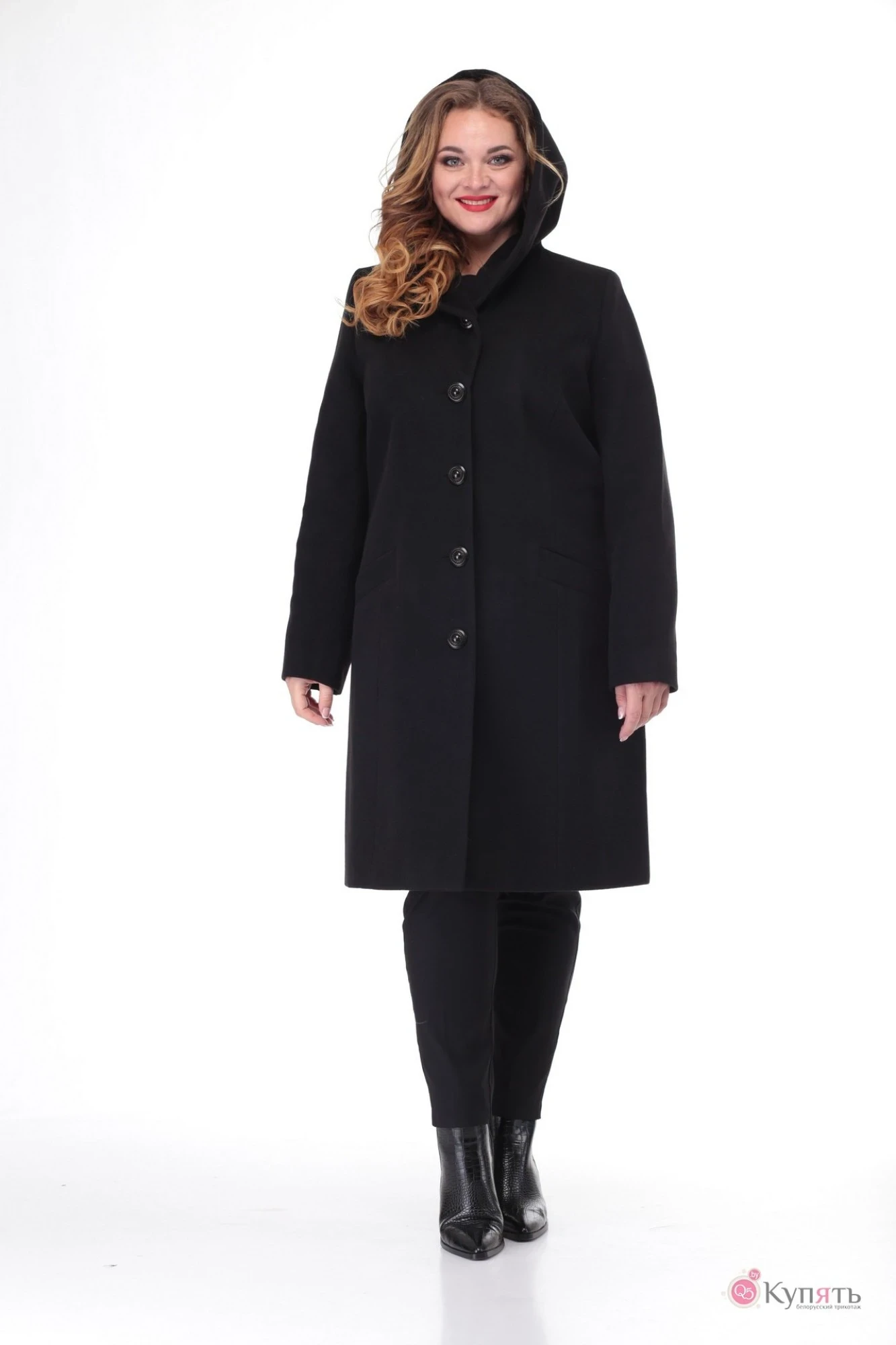 Пальто полуприлегающего силуэта с центральной застёжкой на петли-пуговицы, с капюшоном. По полочке вертикальные рельефы от проймы и карманы с втачной листочкой. Спинка со средним швом и рельефами от проймы. Рукав втачной, двухшовный, изделие на подкладке. Длина по спинке101 см, длина рукава 65 см.