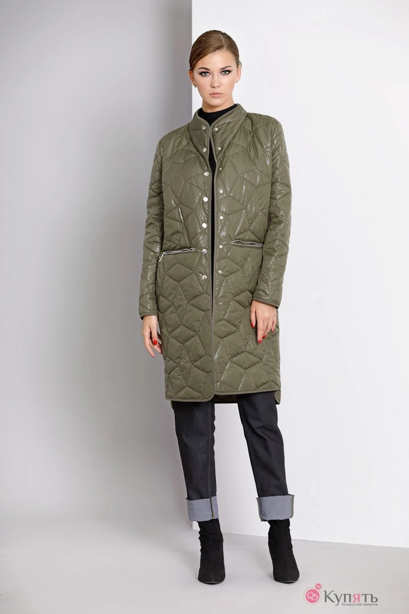 Пальто выполнено из тонкого стеганного болония с рисунком, пальто прямого силуэта, по переду карманы с декоративными молниями, застежка на кнопки.