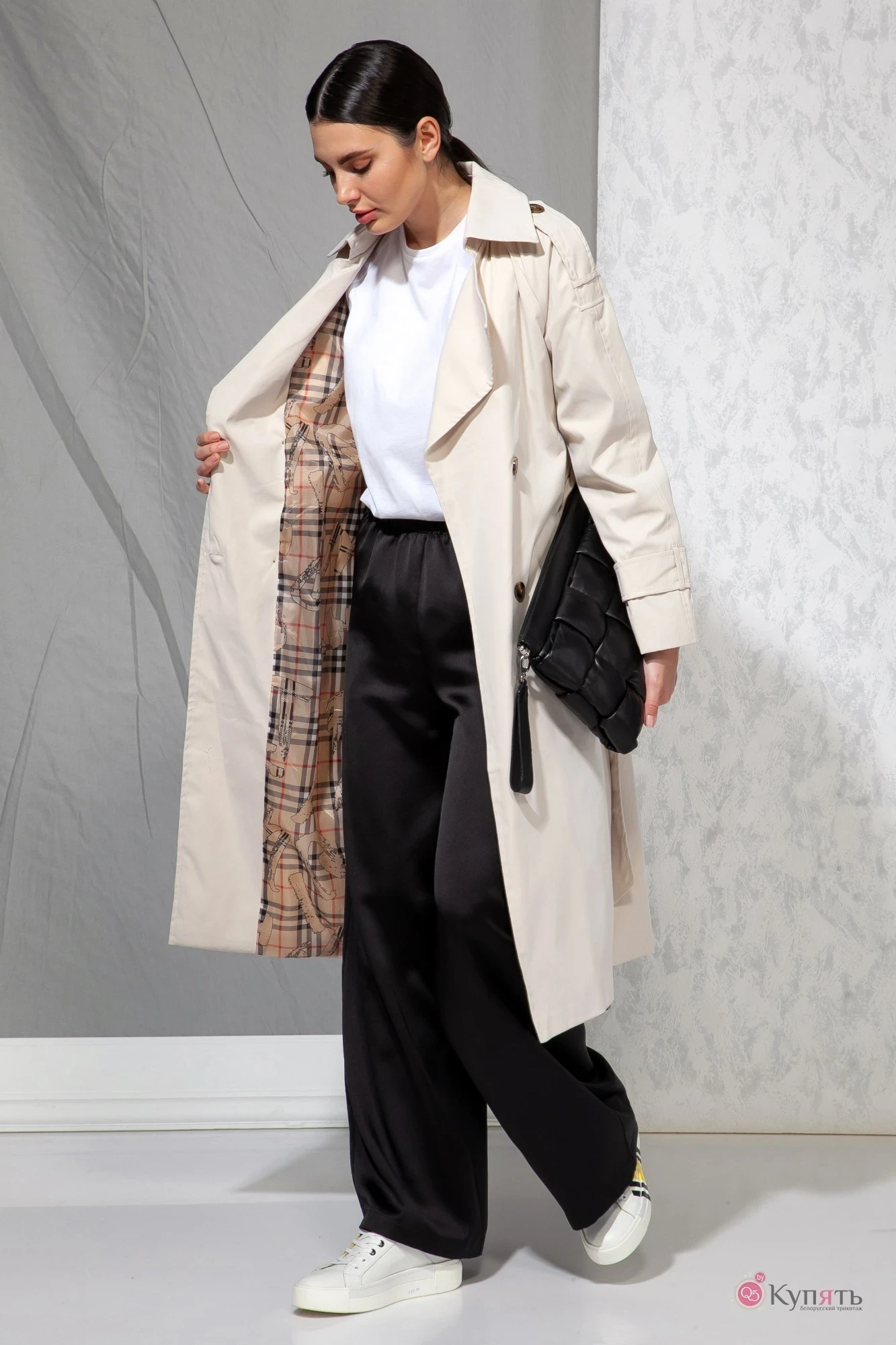 В комплекте к плащу прилагается съемный пояс с пряжкой в цвет пуговиц.