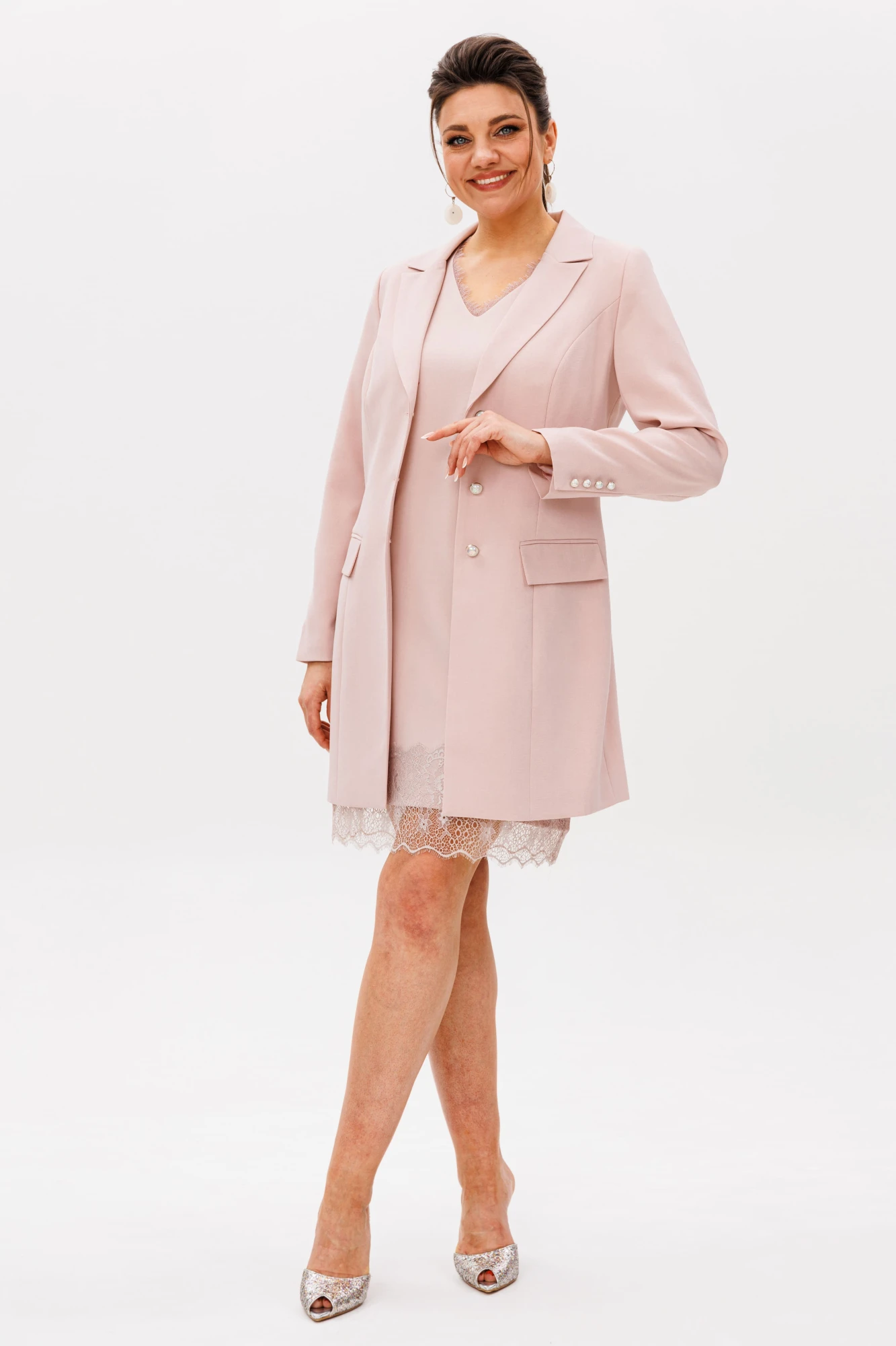 Идеальное сочетание с кружевным платьем 1552 создает гармоничный дуэт женственности и элегантности. Этот жакет — не просто одежда, а важный акцент в создании стильного и продуманного лука для особых случаев.