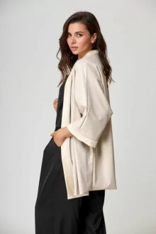 Силуэт: свободный. (На фото жакет сфотографирован в образе с юбкой из эко-кожи 818 бежевых тонов.)