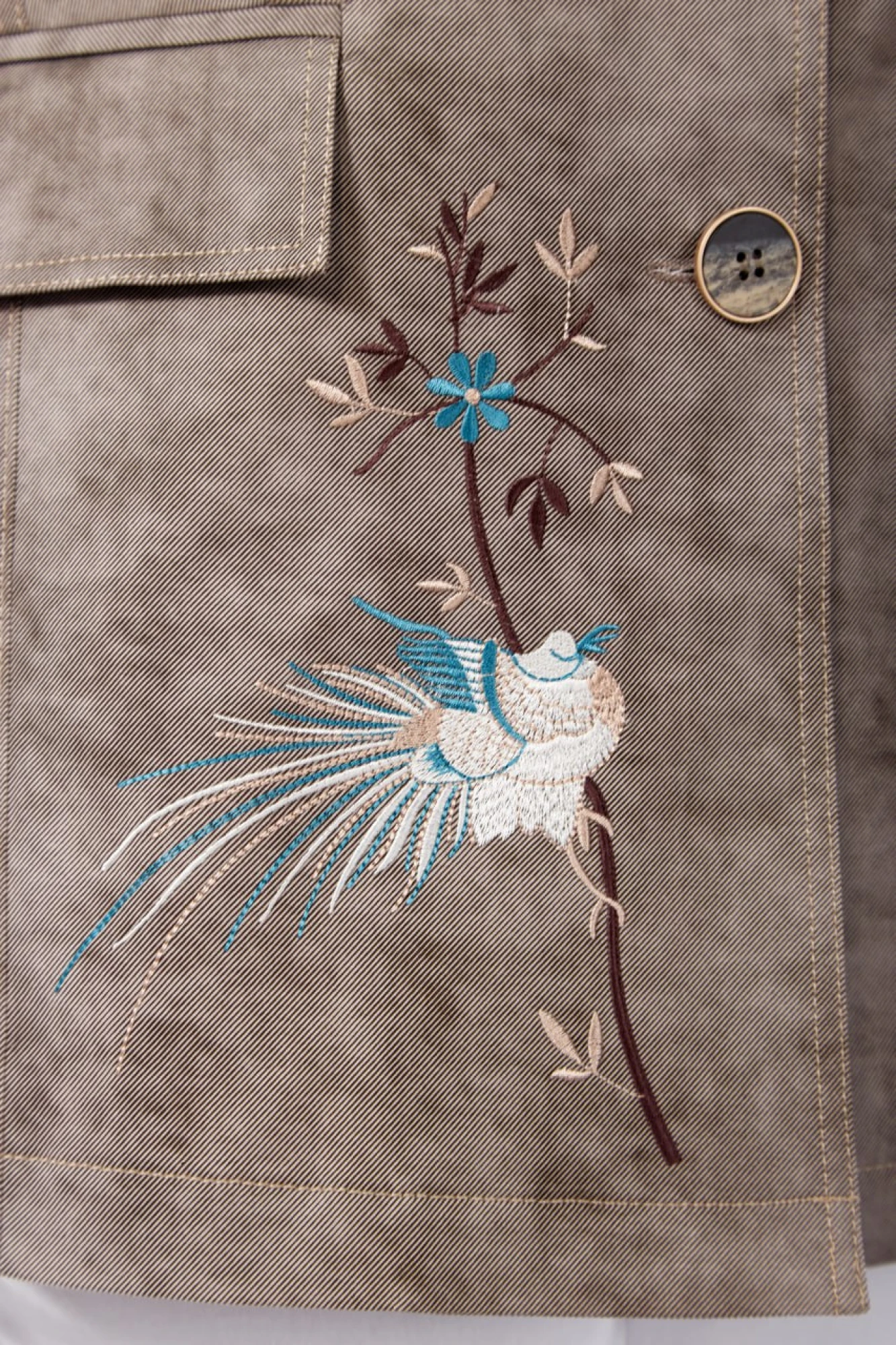 Длина жакета по спинке — 72 см, длина рукава — 62 см, длина плеча — 14 см.