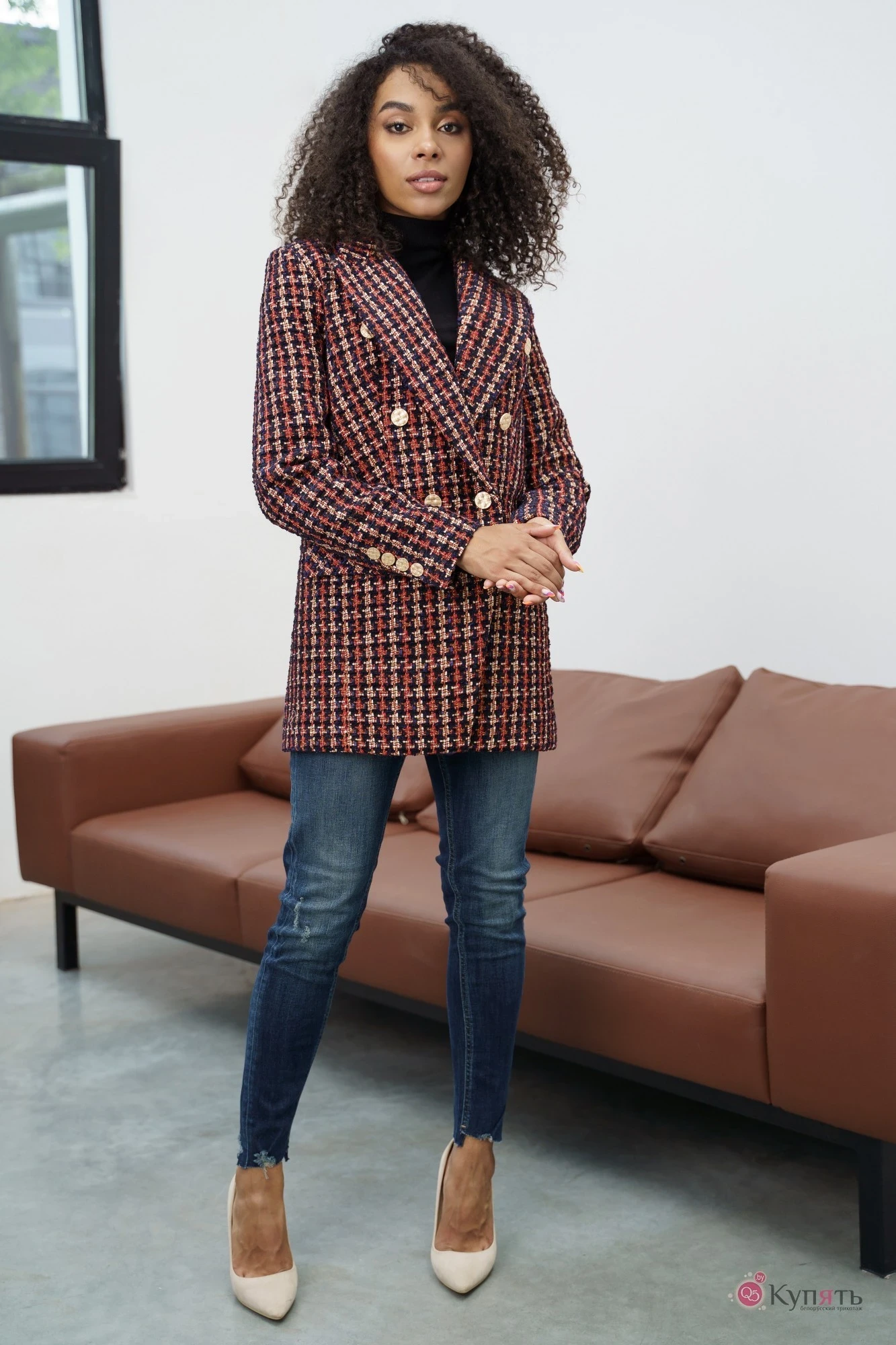 Длина жакета по среднему шву спинки – 71,0 см (±2,0 см), Длина рукава жакета – 60,5 см (±1,0 см)